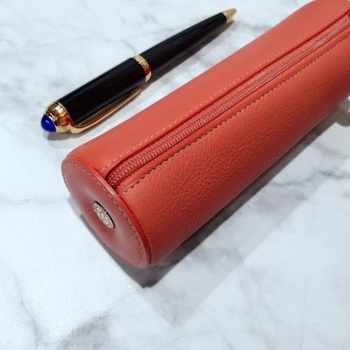 Cartier カルティエ 筒形 ペンケース ミニ ポーチ レザー L3000687 コーラル ピンク.