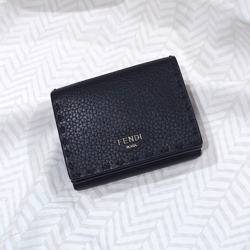 ハンドステッチがポイント!FENDI セレリア 三つ折り財布、ブラックです。