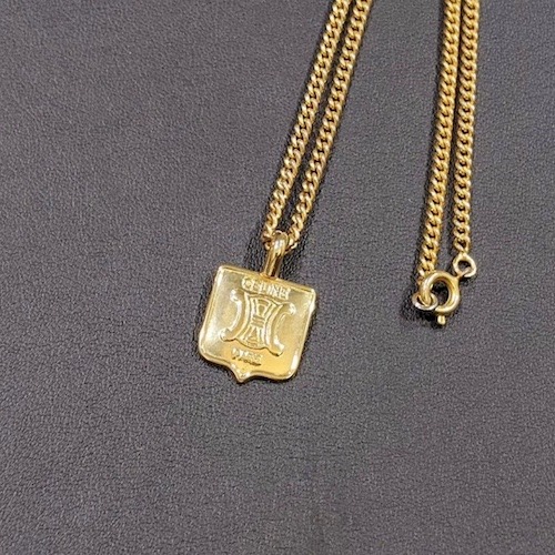 ヴィンテージ CELINE セリーヌ プレート ネックレス ブラゾン マカダム ゴールド.