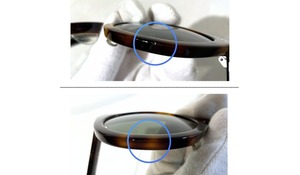 ・フレームやテンプル(つる)に微細なスレキズがありますが(写真7、8枚目参照)、大きなスレやキズはありません。変色、汚れはありません。