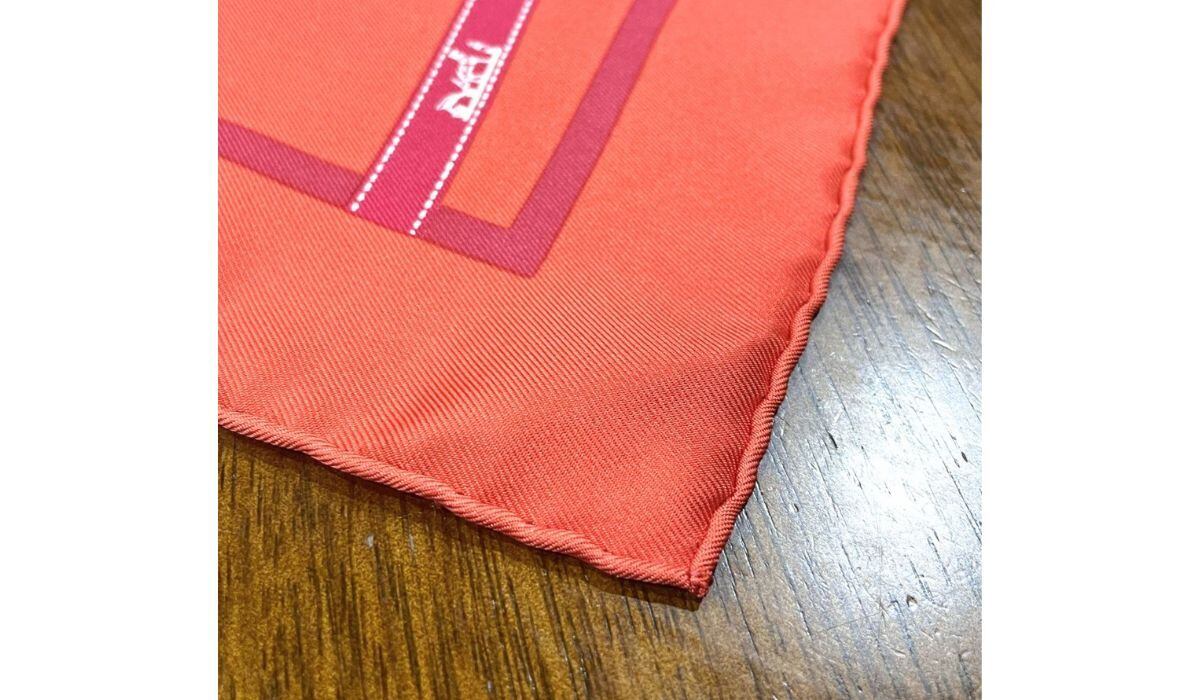 HERMES エルメス ボルデュック スカーフ プチカレ シルク オレンジ ピンク系 リボン柄
