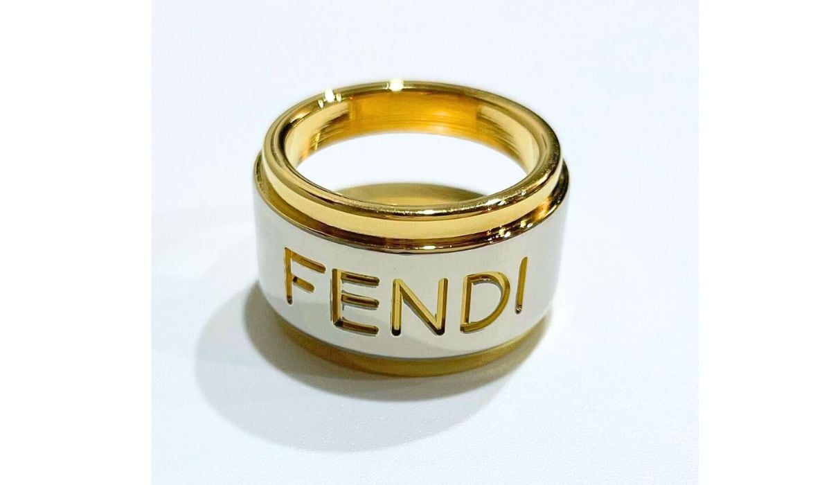 ◎ゴールドとシルバーのコンビカラーがオシャレ!重厚な金属の質感を楽しめるFENDIロゴのスカーフリングです。