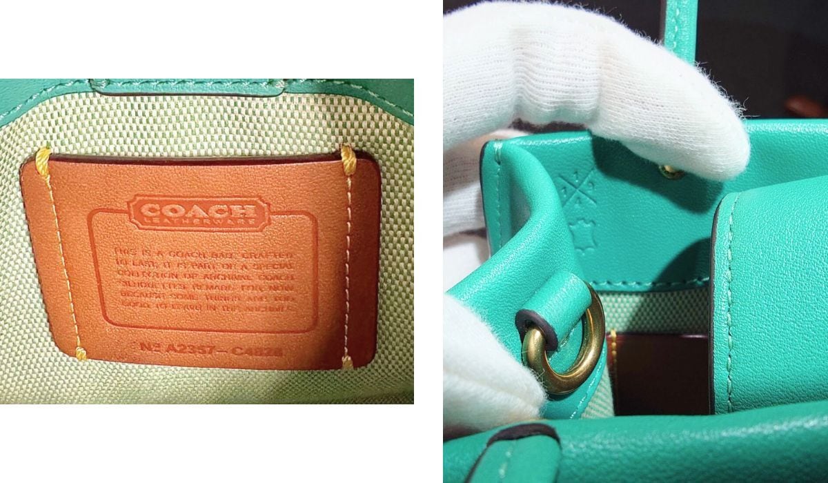 COACH コーチ ミニカシン トート バッグ ミニハンドバッグ ターコイズ グリーン レザー ストラップなし C4828