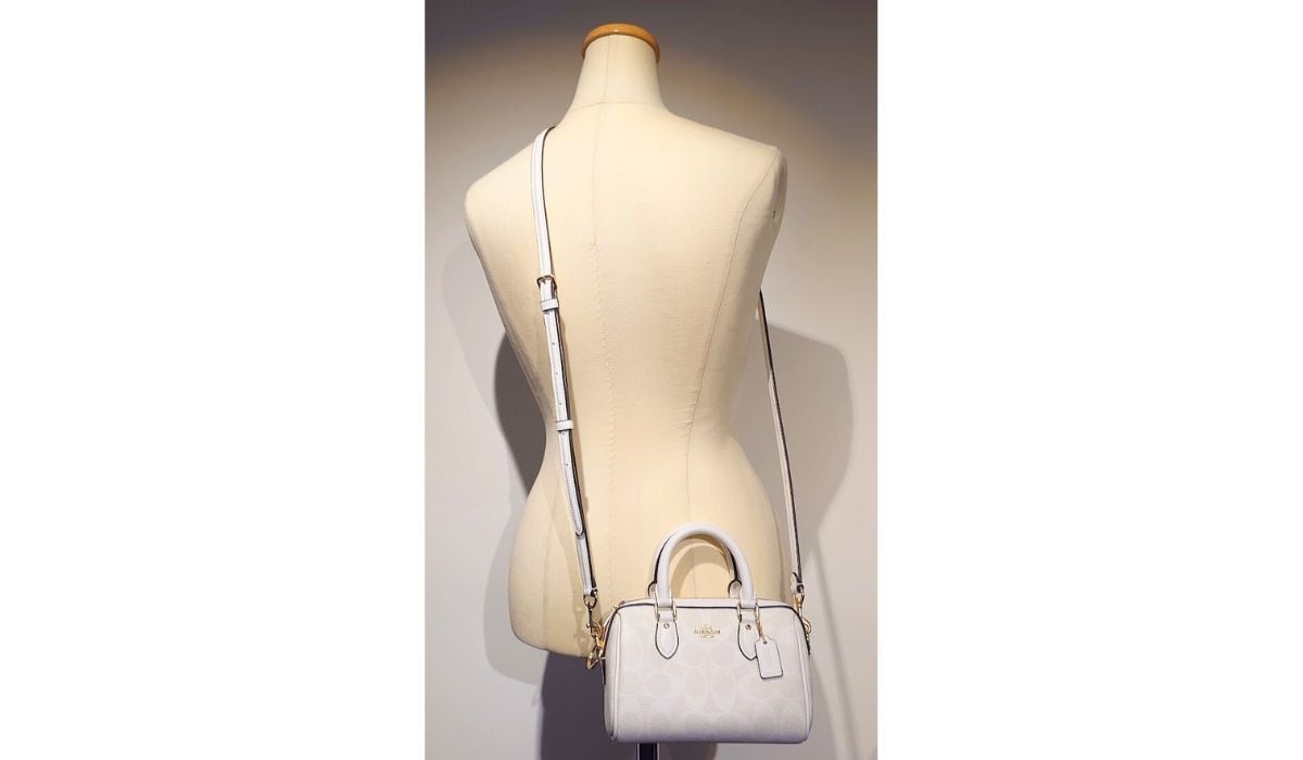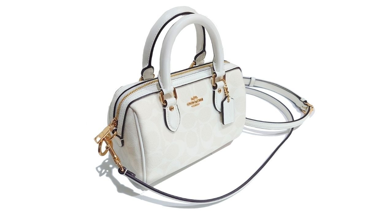 COACH コーチ ミニ ローアン クロスボディ シグネチャー キャンバス ミニボストン ハンドバッグ チョーク ホワイト