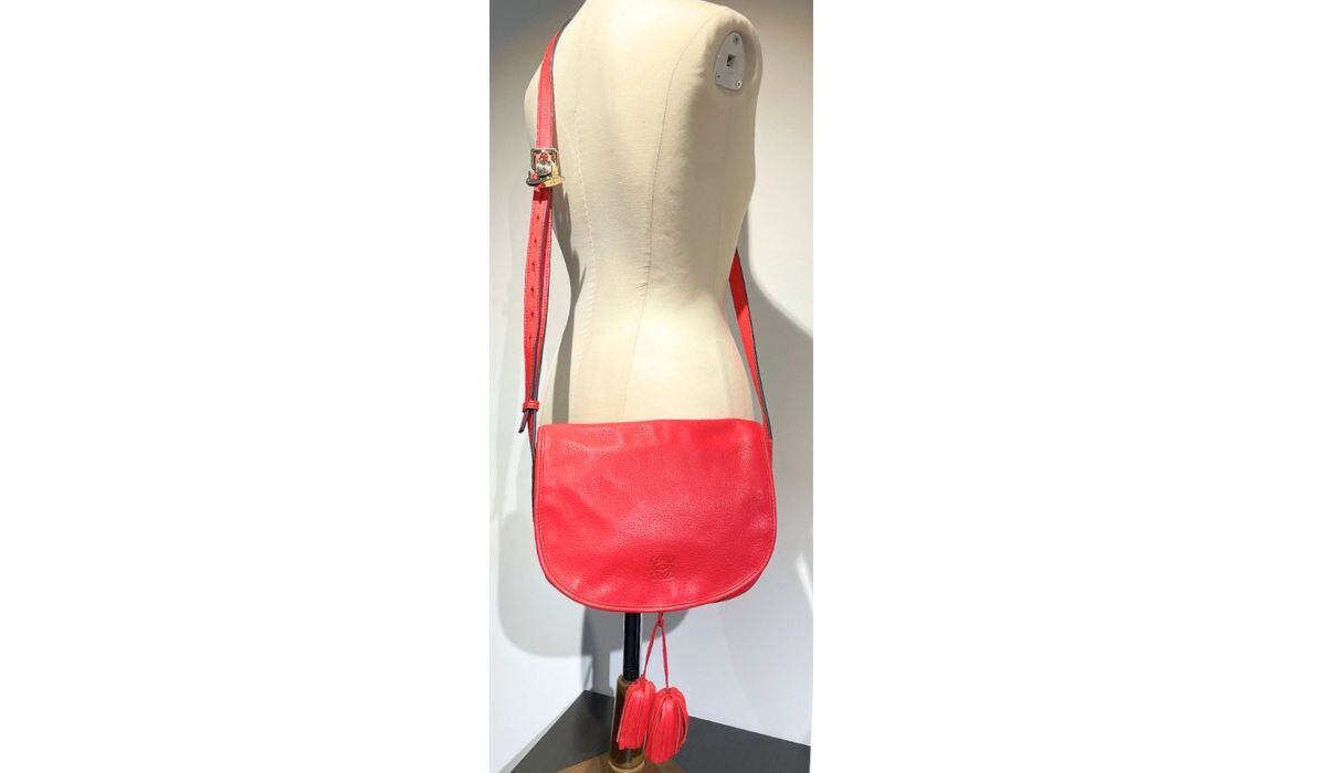 LOEWE ロエベ ショルダーバッグ クロスボディ アナグラム タッセル フリンジ レザー 赤 レッド カタツムリチャーム