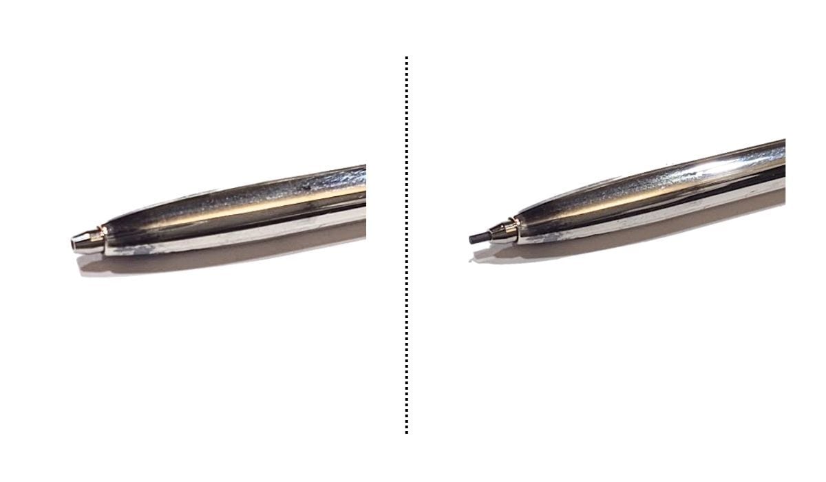 シャープペンシルの内部機構は S.T.Dupont製で、プラスチックの部分から芯を追加することが出来ます。