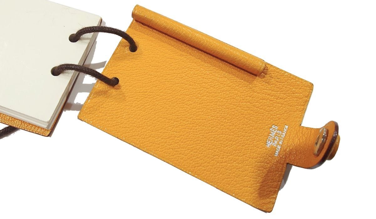 HERMES エルメス メモ ストラップ ペンシル セット メモホルダー メモ帳 シェーブル レザー イエロー □H刻 04年製 シャープペンシル S.T.Dupont デュポン SV925