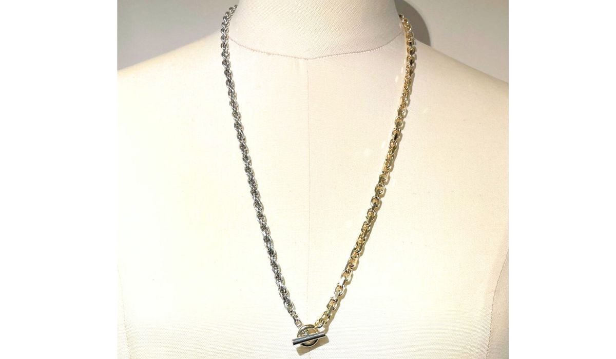 BOTTEGA VENETA ボッテガ ヴェネタ アルジェント アンティーク チェーン ネックレス シルバー ゴールド コンビ Ag925
