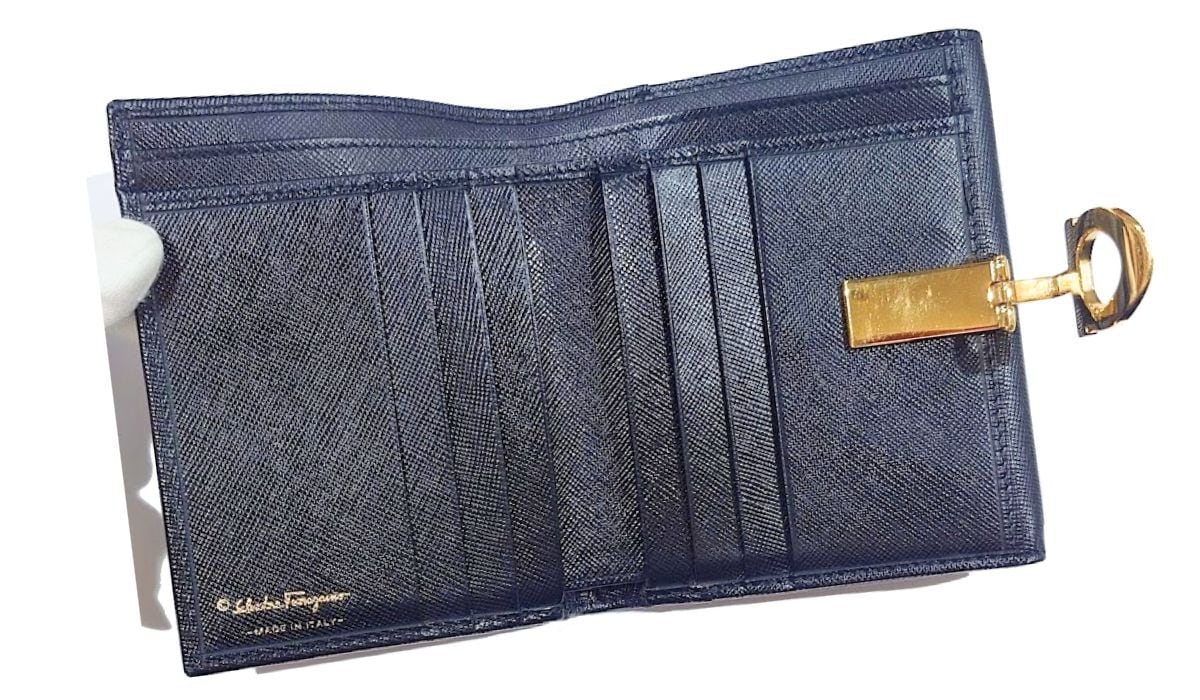 Salvatore Ferragamo フェラガモ ガンチーニ 二つ折り 財布 ブラック レザー
