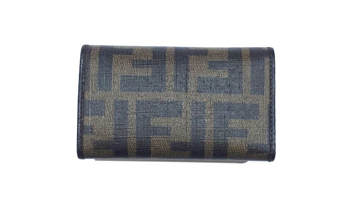 FENDI フェンディ ズッカ柄 6連キーケース ゴールド ロゴプレート PVC レザー ブラウン 8AP079