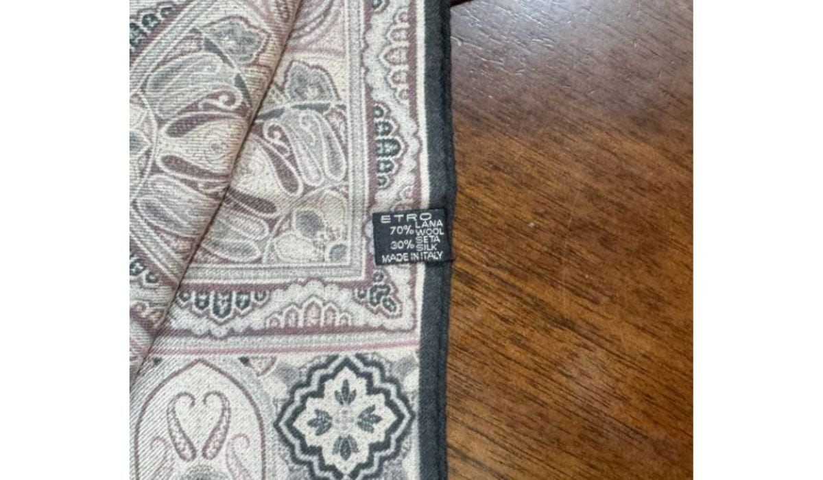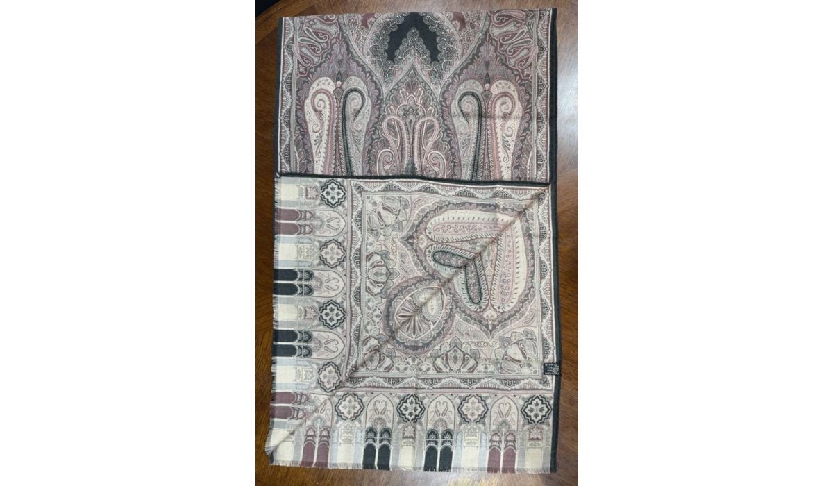 未使用 ETRO エトロ スカーフ ストール パープル グレー マルチカラー ペイズリー柄 ウール シルク