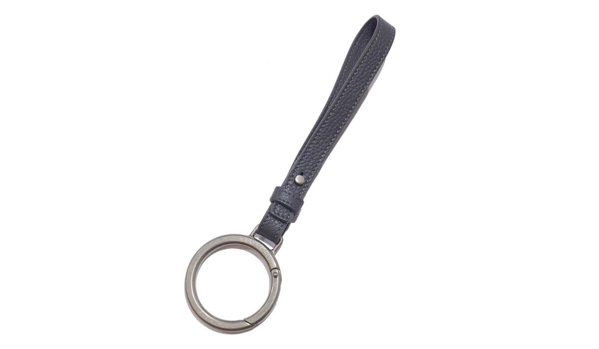 SAINT LAURENT サンローラン キーリング バッグチャーム ループストラップ グレー レザー