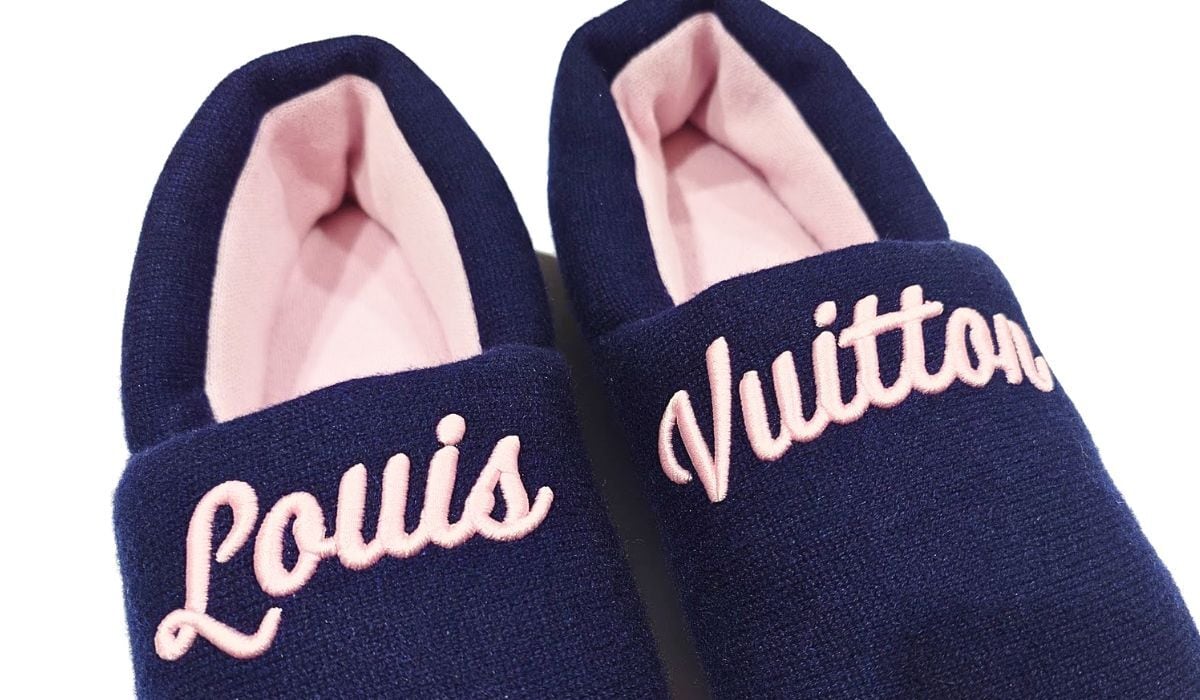 LOUIS VUITTON ルイヴィトン LV ニット ルームシューズ スリッパ ドリーミーライン ネイビー ピンク #39