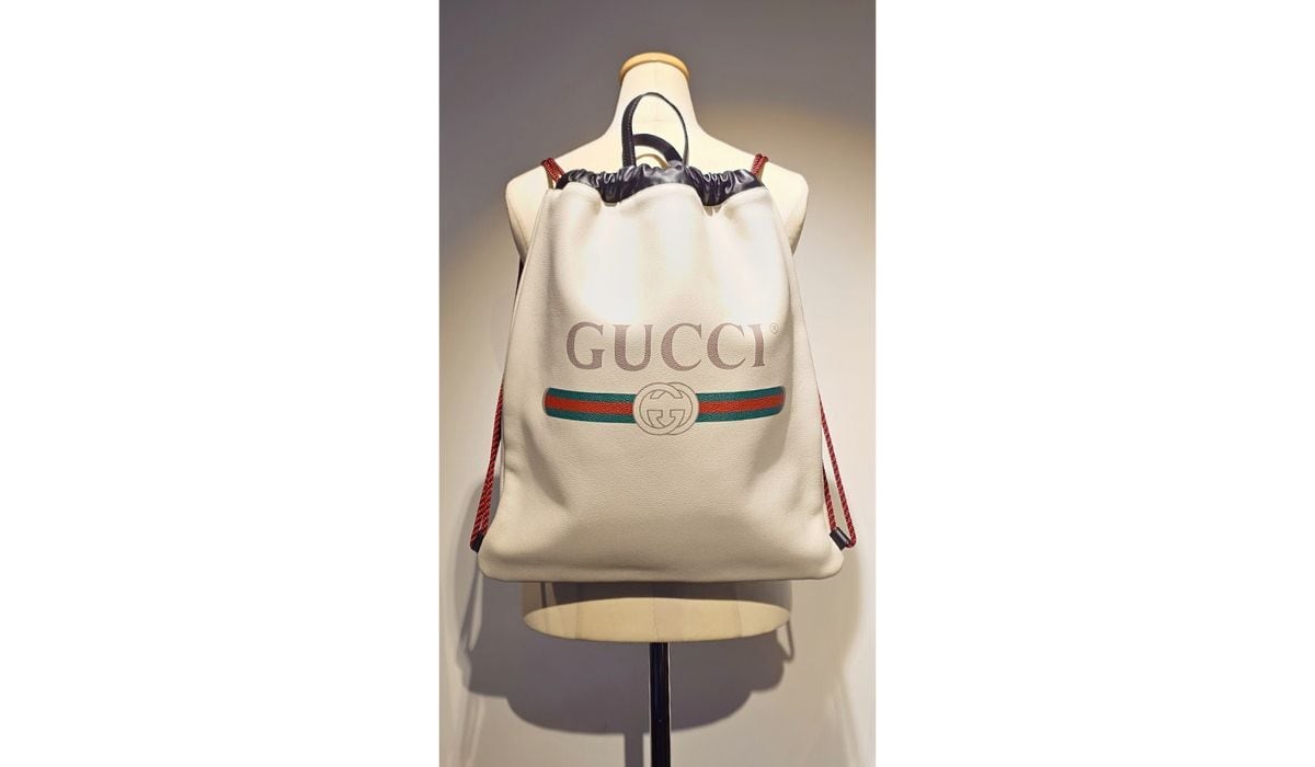 GUCCI グッチ ドローストリング バッグパック リュック ナップサック レザー ホワイト アイボリー 494053