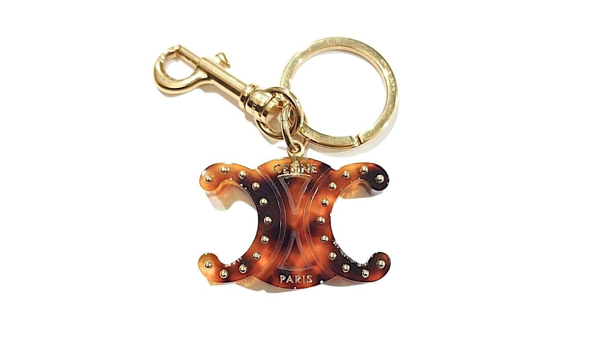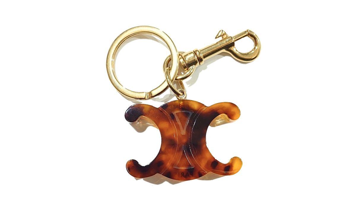 CELINE セリーヌ トリオンフ キーリング チャーム キーホルダー ブラウン べっ甲調