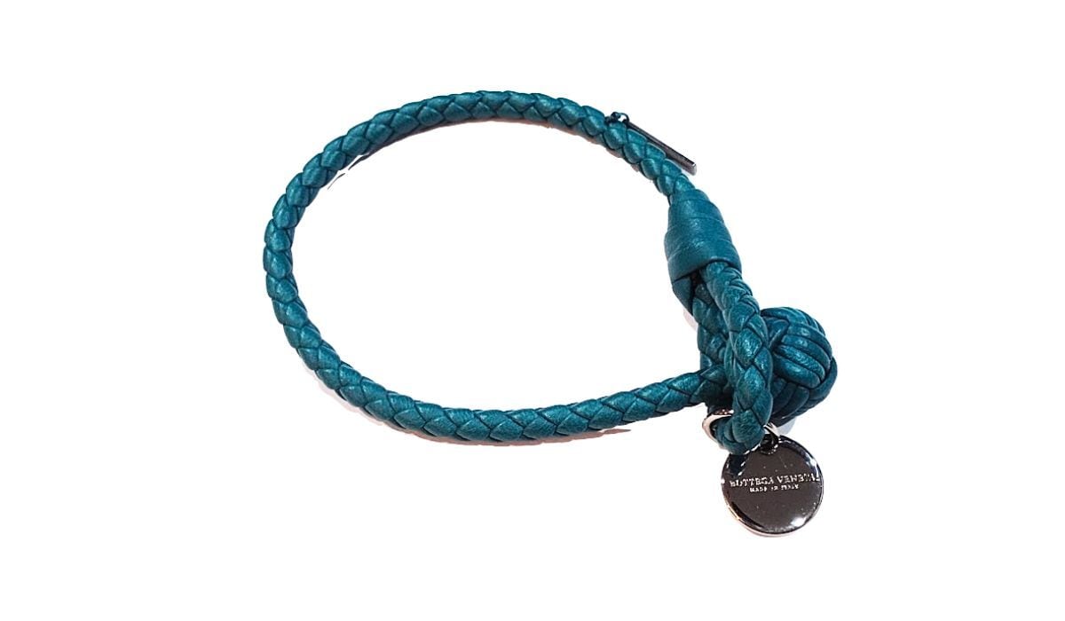 BOTTEGA VENETA ボッテガ ヴェネタ イントレチャート レザー ブレスレット グリーン ターコイズ sizeM