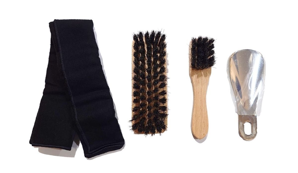 ◎靴のお手入れに必要なアイテムが円筒型のケースにコンパクトにまとまった、お洒落なシューケアキットです。