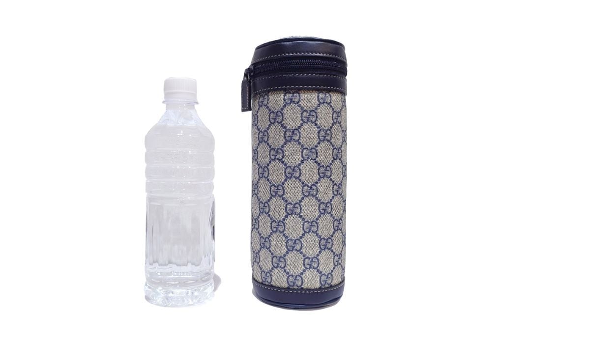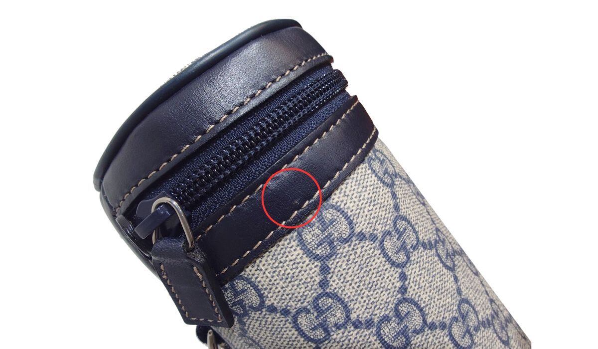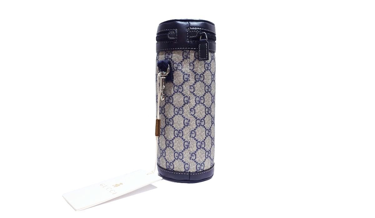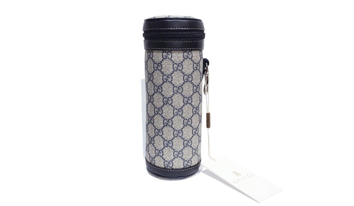 未使用品 GUCCI グッチ ボトルカバー ボトルケース GGスプリームキャンバス レザー グレー ネイビー 271360
