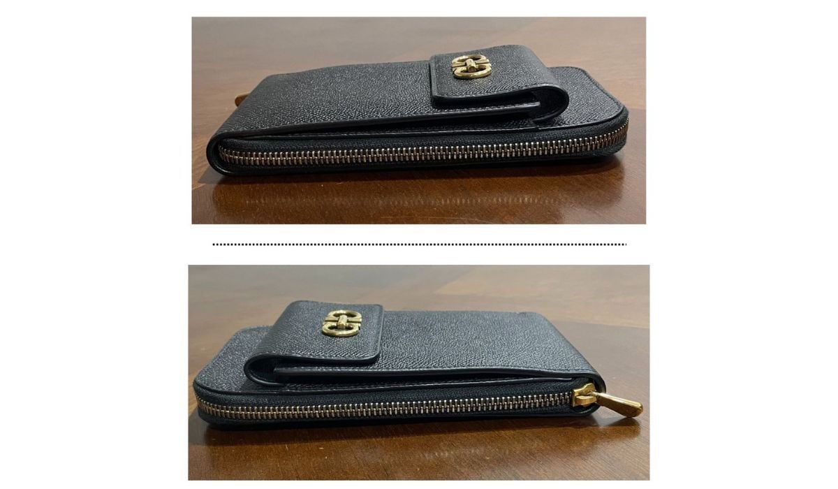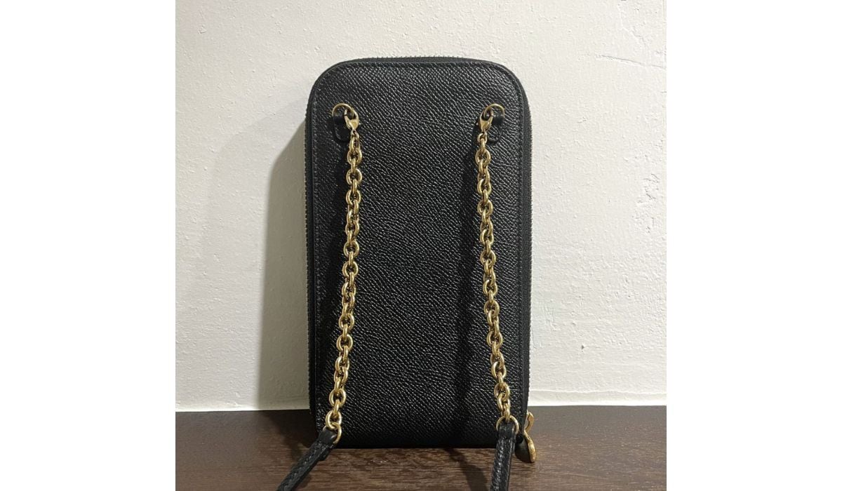 ◎高級感のある漆黒のレザーとゴールドのガンチーニの組み合わせがオシャレなスマホバッグ・ミニショルダーです。
