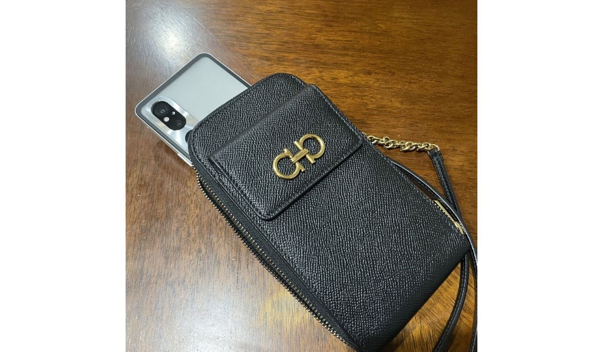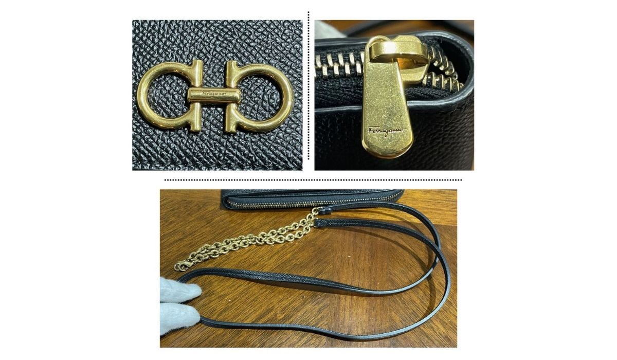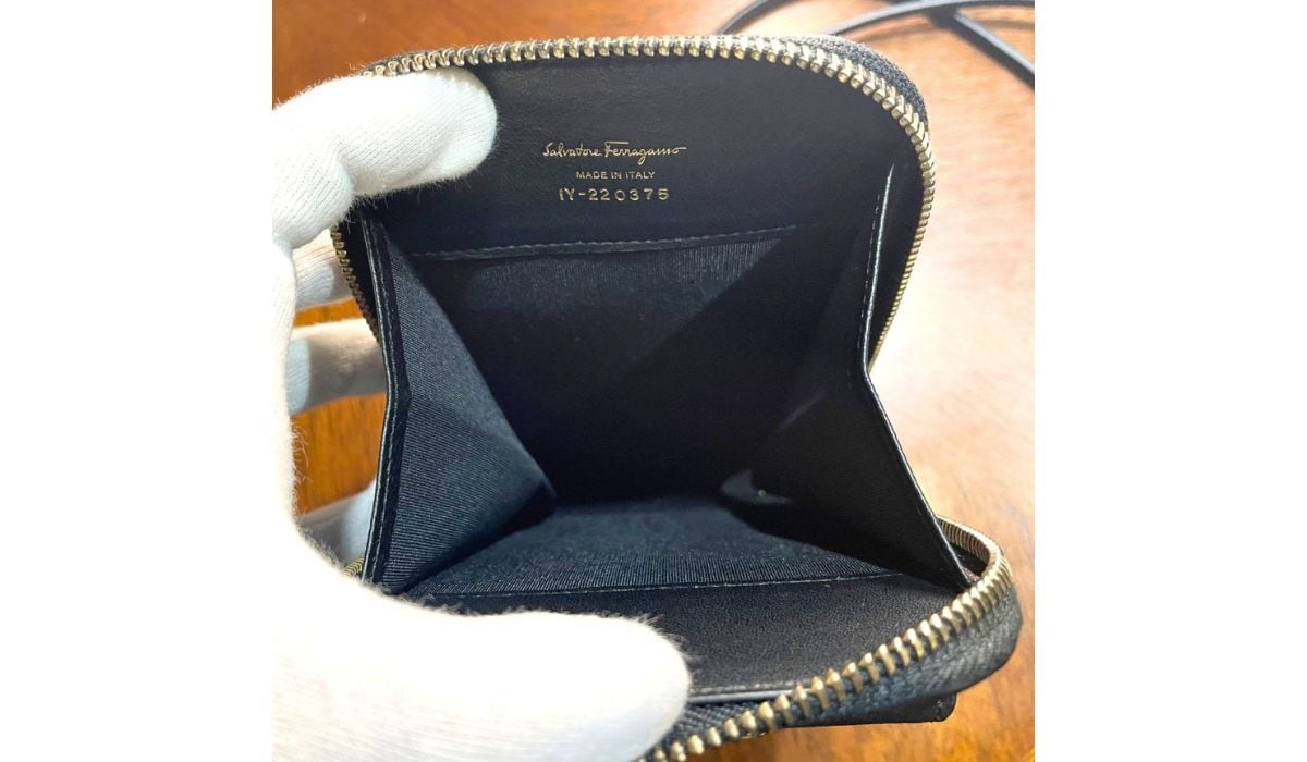 Salvatore Ferragamo フェラガモ スマホショルダー ミニショルダーバッグ クロスボディ フォンポーチ ガンチーニ レザー 黒 IY-220375