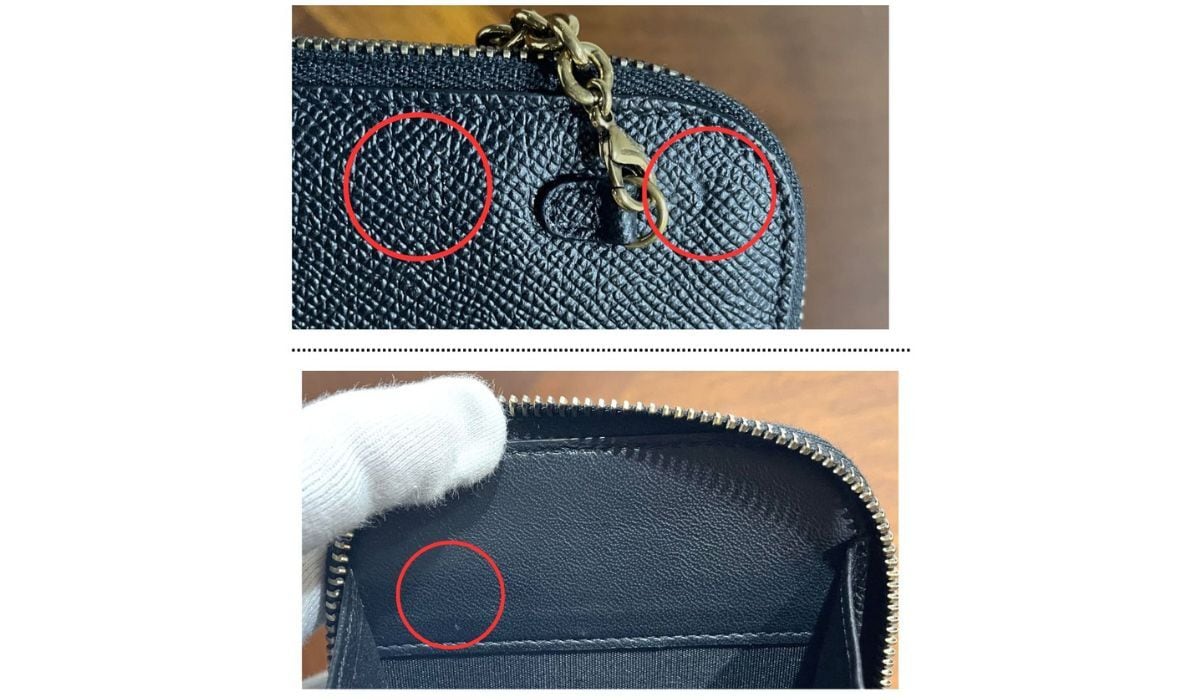 ・外側レザーに極小の押し跡やスレがありますが(写真8枚目参照)、大きなキズや汚れ・変色はありません。角スレや剥がれはありません。