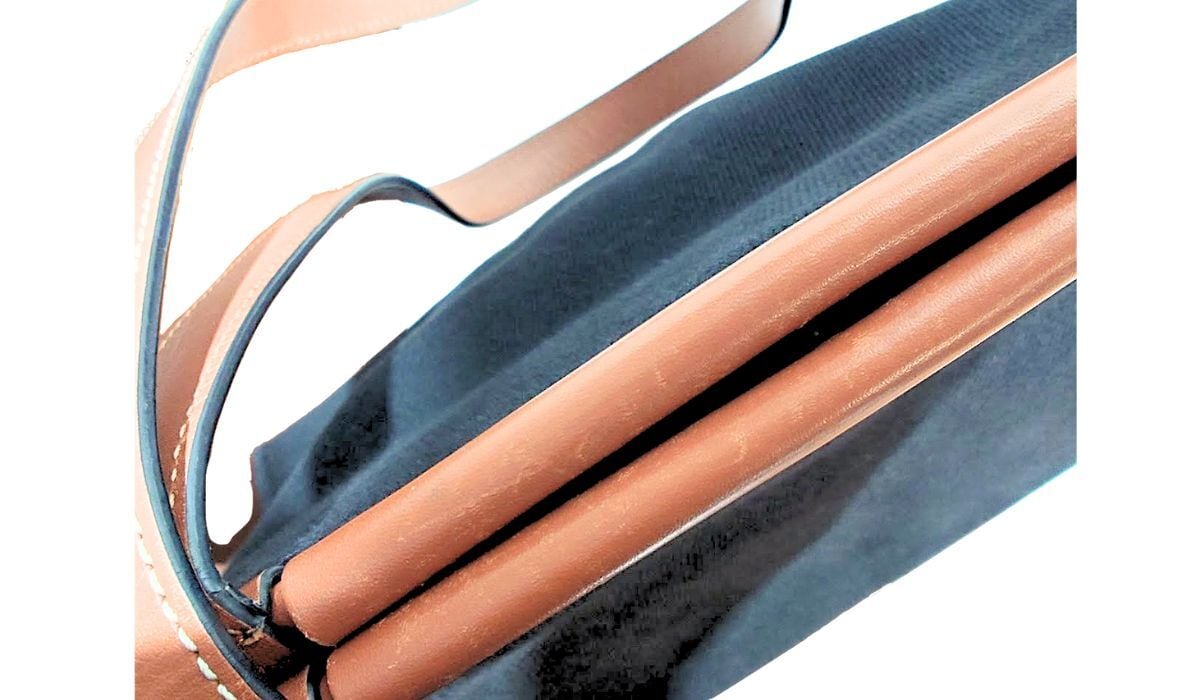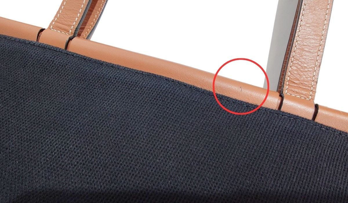 ・開口部のレザーにツメ跡のようなスレ・軽微な汚れがあります(写真5、12〜14枚目参照)。1箇所、極小の汚れがあります(写真9枚目参照)。大きなキズやシミはありません。