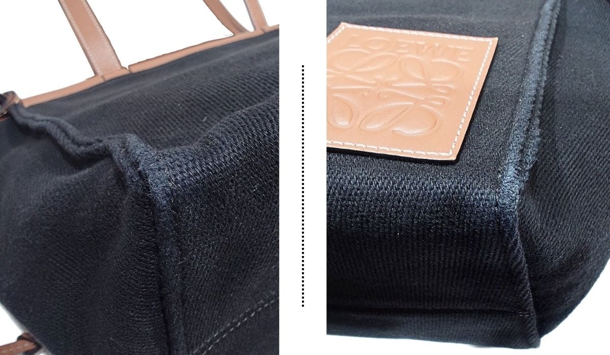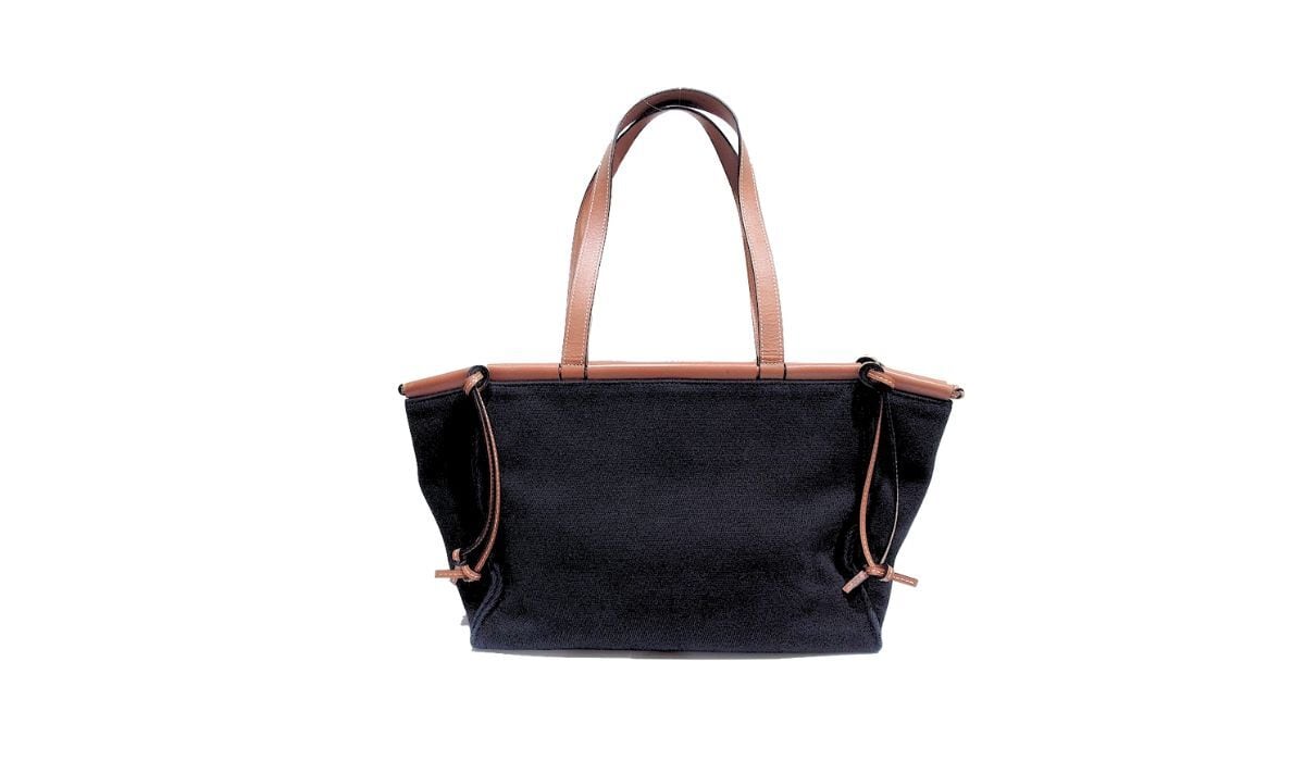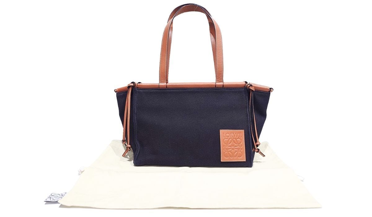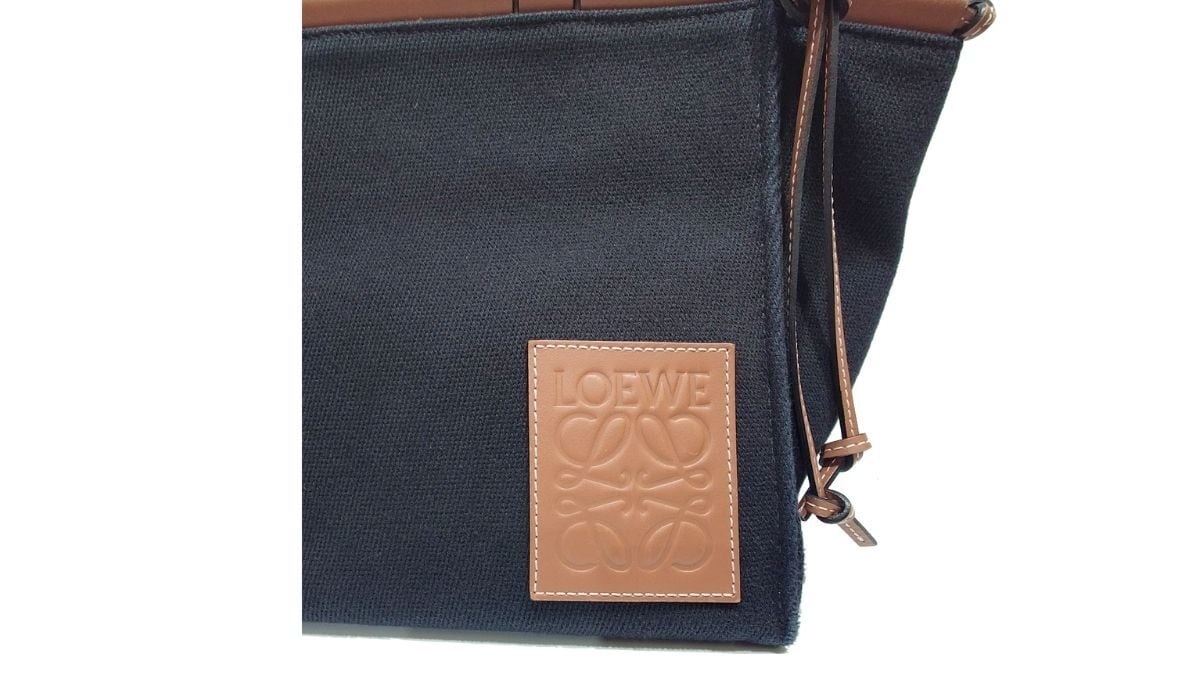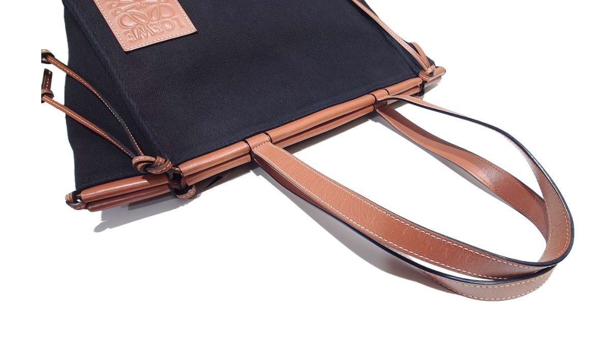 LOEWE ロエベ クッショントート スモール トートバッグ ショルダーバッグ キャンバス レザー ブラック 黒