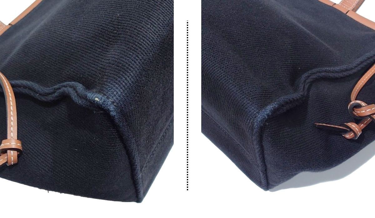 ・外側キャンバス地に軽微なスレや角スレ、1箇所に極小の角破れがあります(写真7~8枚目参照)。大きなキズや変色・汚れはありません。