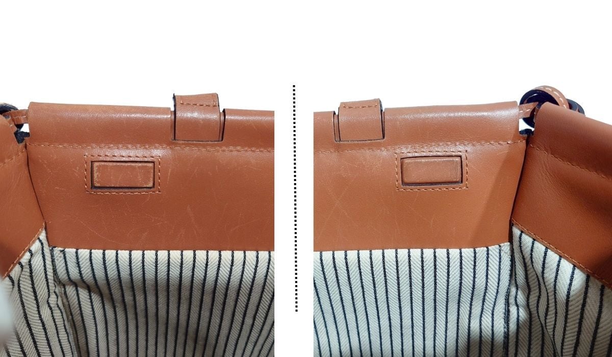 ・フロント及び底部のレザー、アナグラム型押しやブランドロゴに目に付く汚れや潰れ、変色はありません。