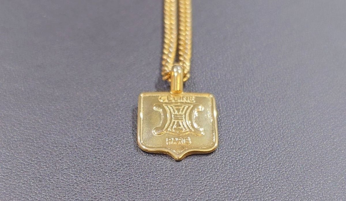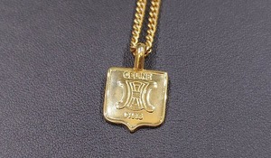ヴィンテージ CELINE セリーヌ プレート ネックレス ブラゾン マカダム ゴールド