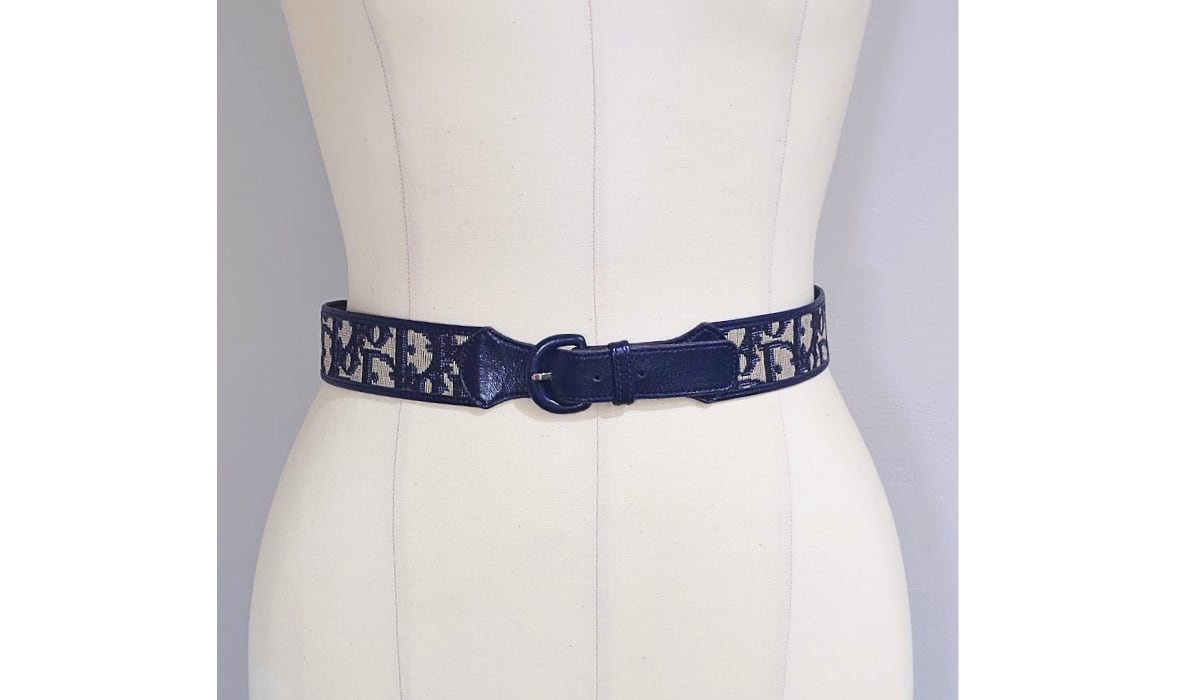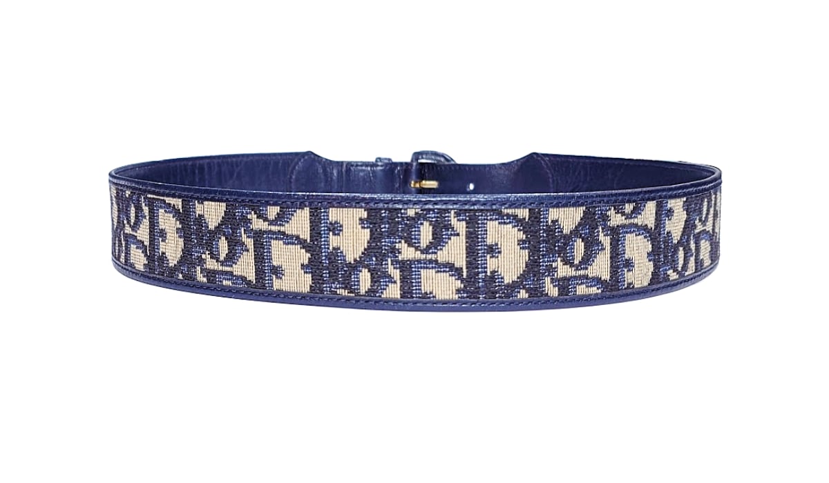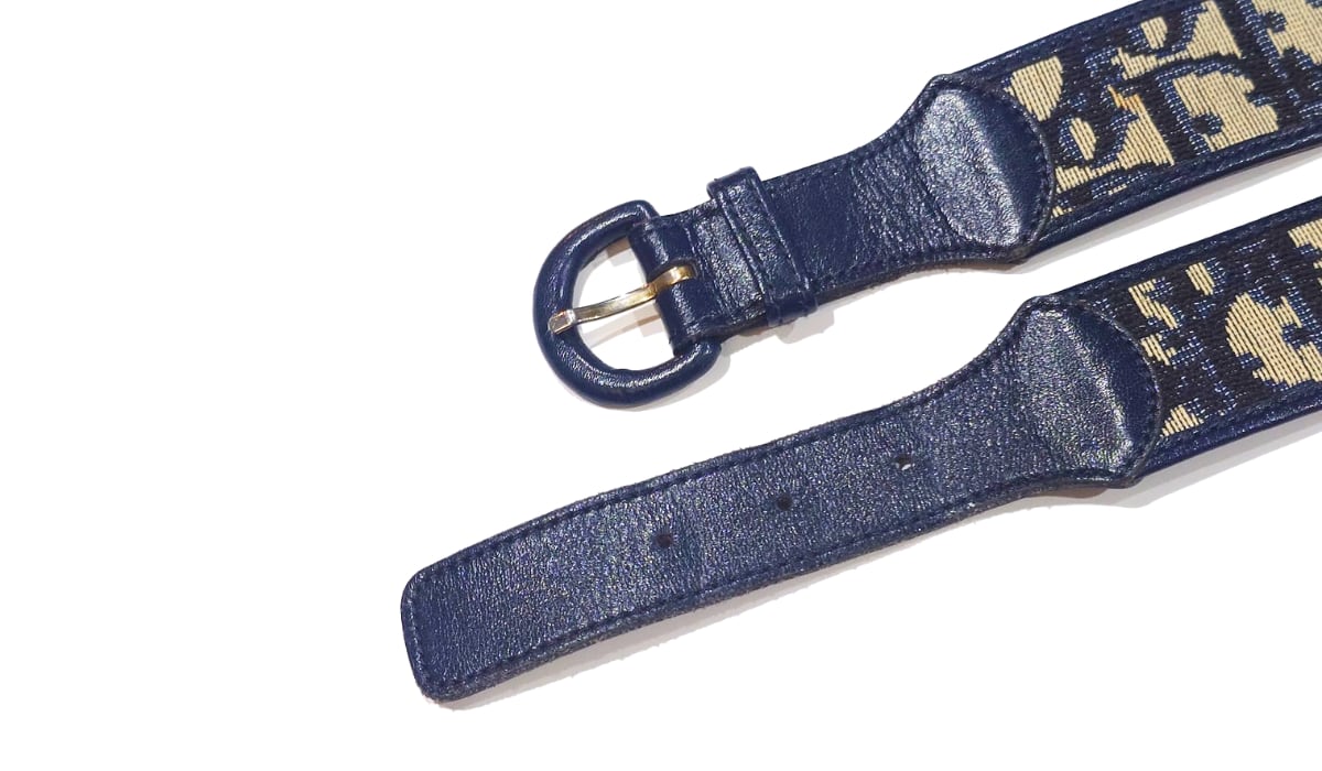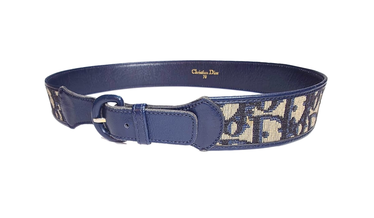 ◎ネイビーのトロッター柄が目を惹くDiorのヴィンテージベルトです。