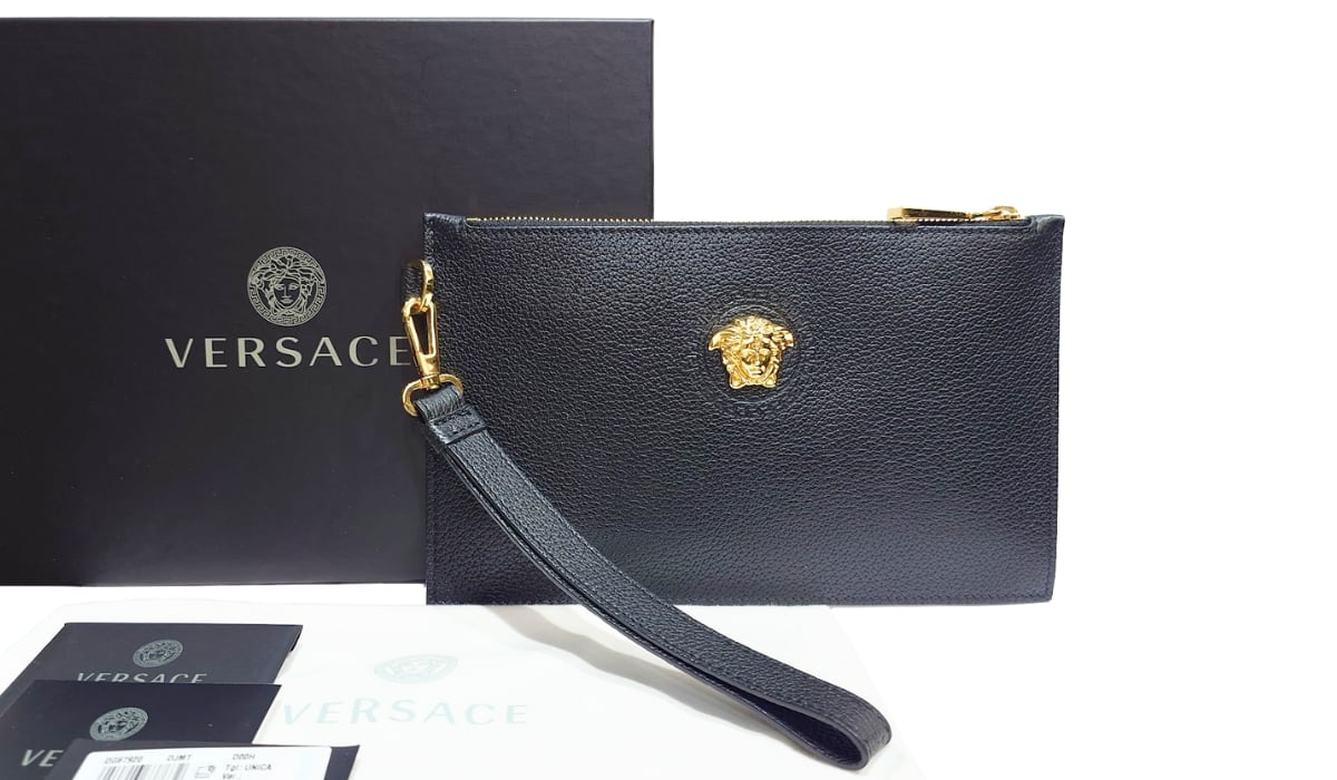 VERSACE ヴェルサーチェ ヴェルサーチ メドゥーサ レザー ポーチ クラッチバッグ ブラック ゴールド