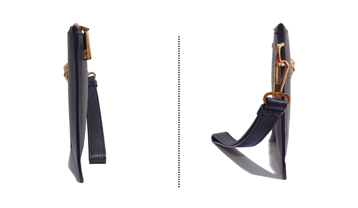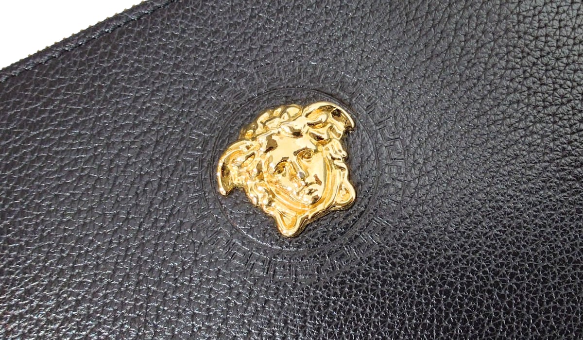 ギリシア神話で有名なメドゥーサ(メデューサ)を大胆に取り入れた代表的なアイコンは長年変わる事なく、本商品でも立体的なゴールドのメドゥーサが目を惹きます。