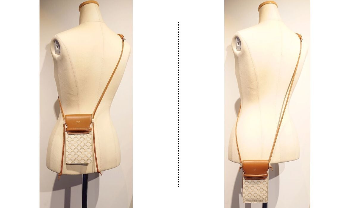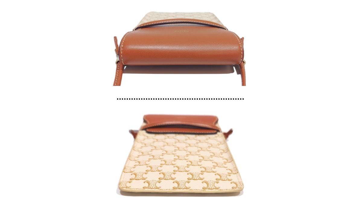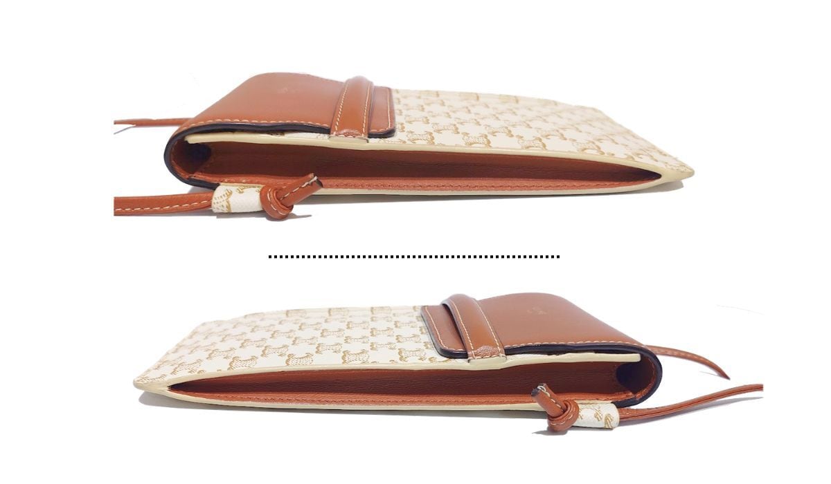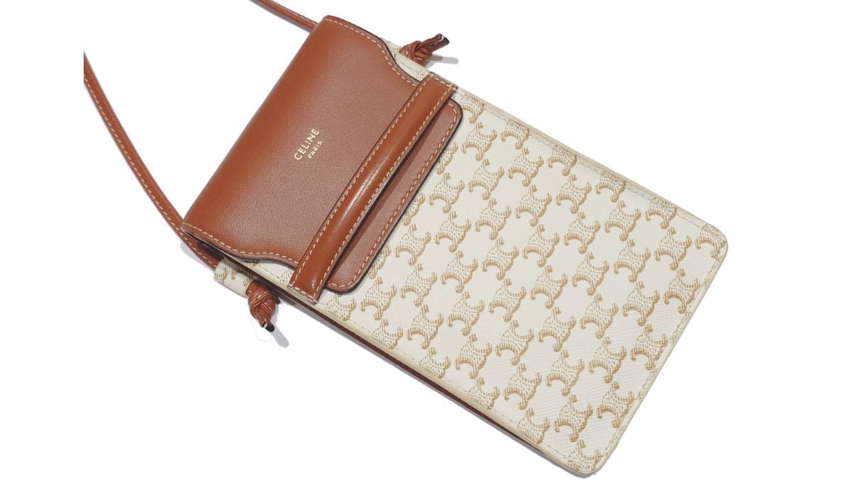 CELINE セリーヌ モバイルポーチ フォンポーチ スマホショルダー トリオンフキャンバス ラムスキン 10G332CQD オフホワイト