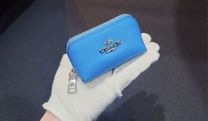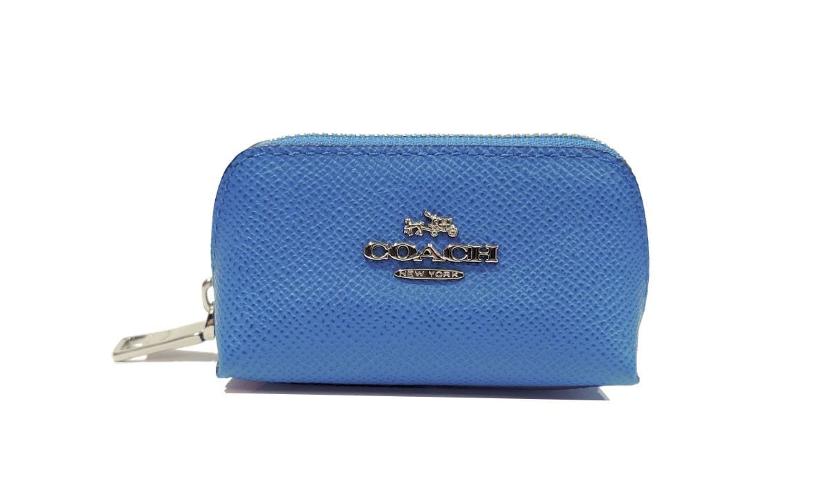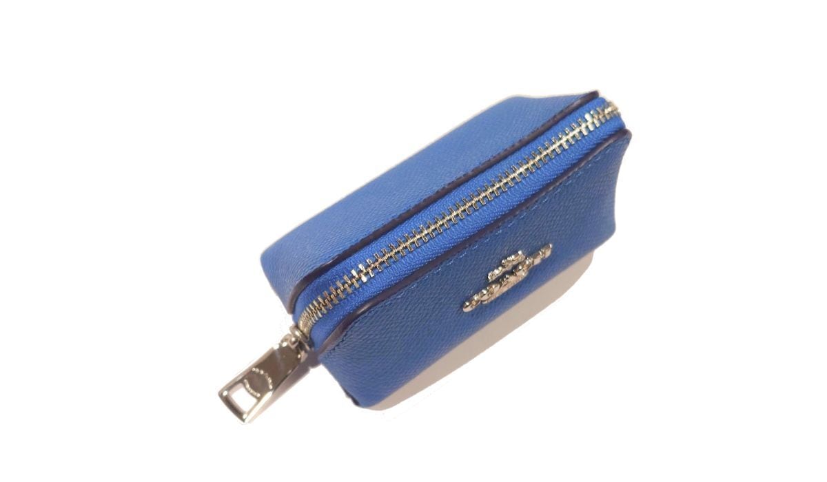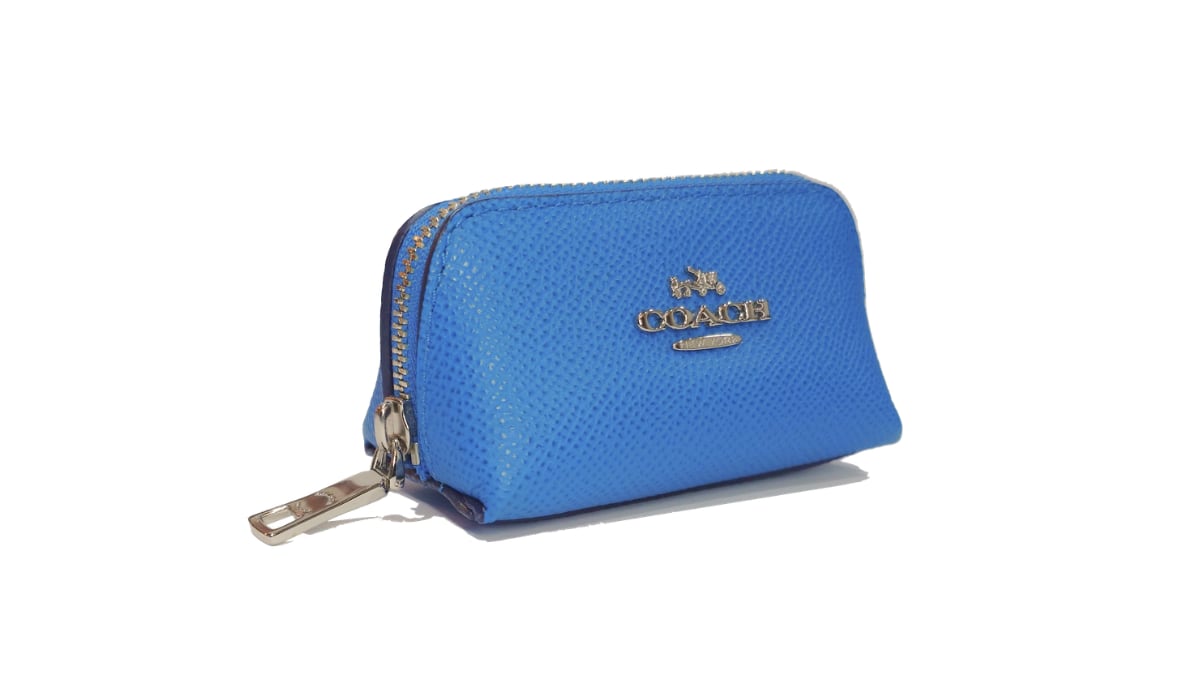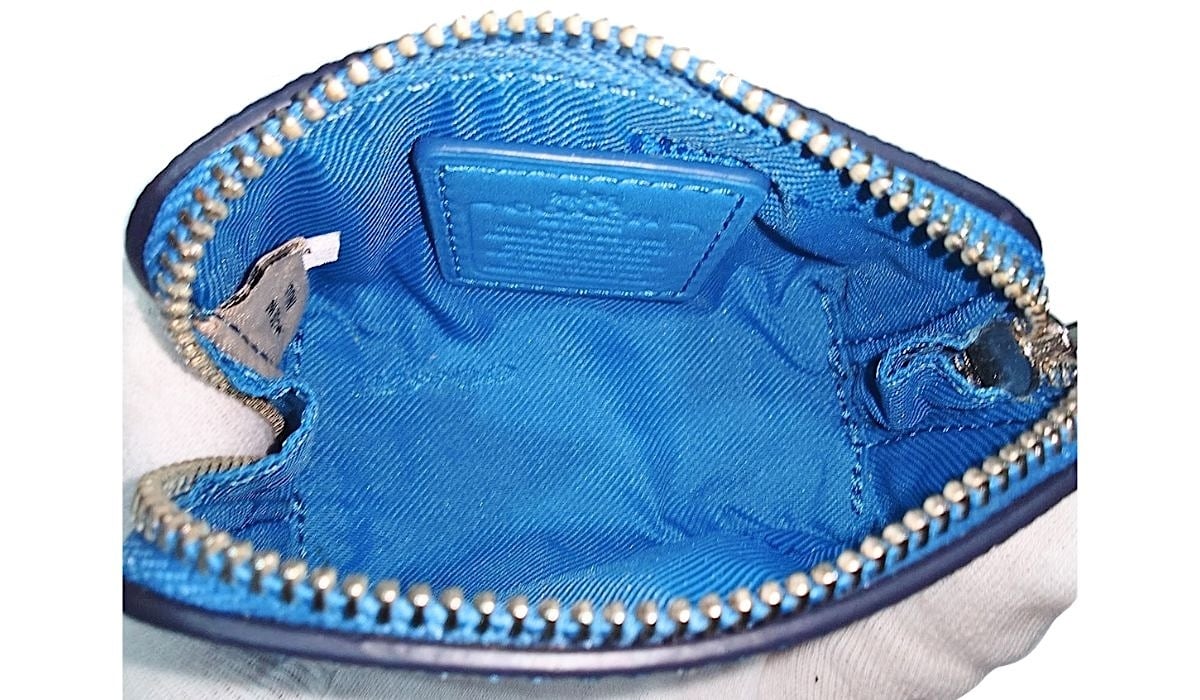 COACH コーチ レザー 三角 ミニ ポーチ コインケース 小銭入れ コスメポーチ ピーコック ブルー H1544 手のひらサイズ