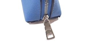 鮮やかなピーコックブルーのレザーが目を惹く、使用感を感じない極美品です。
