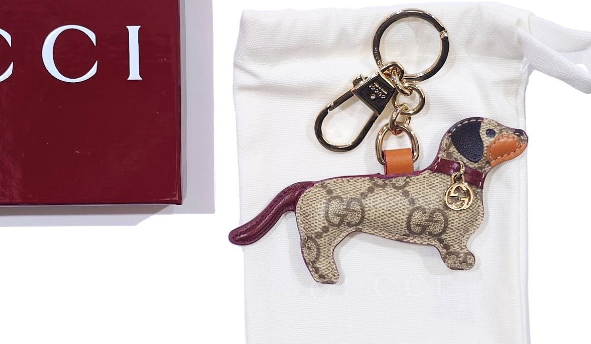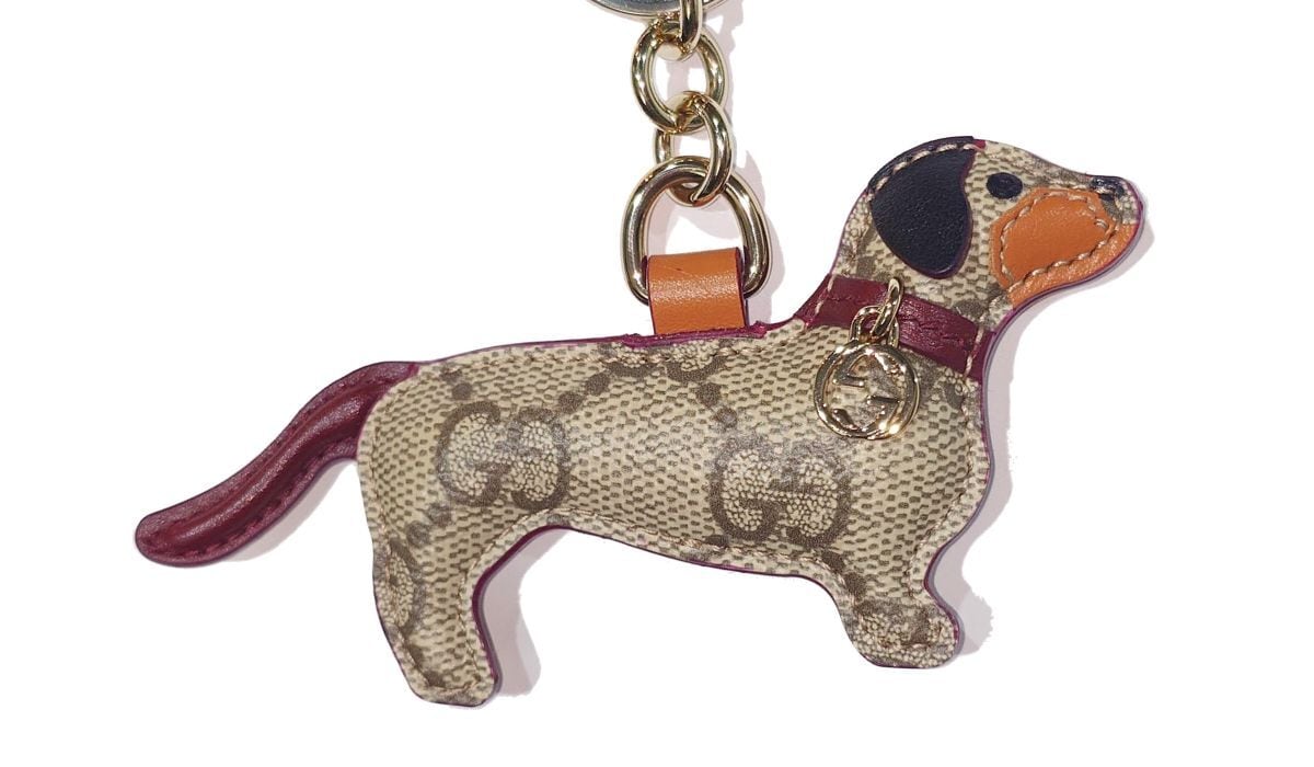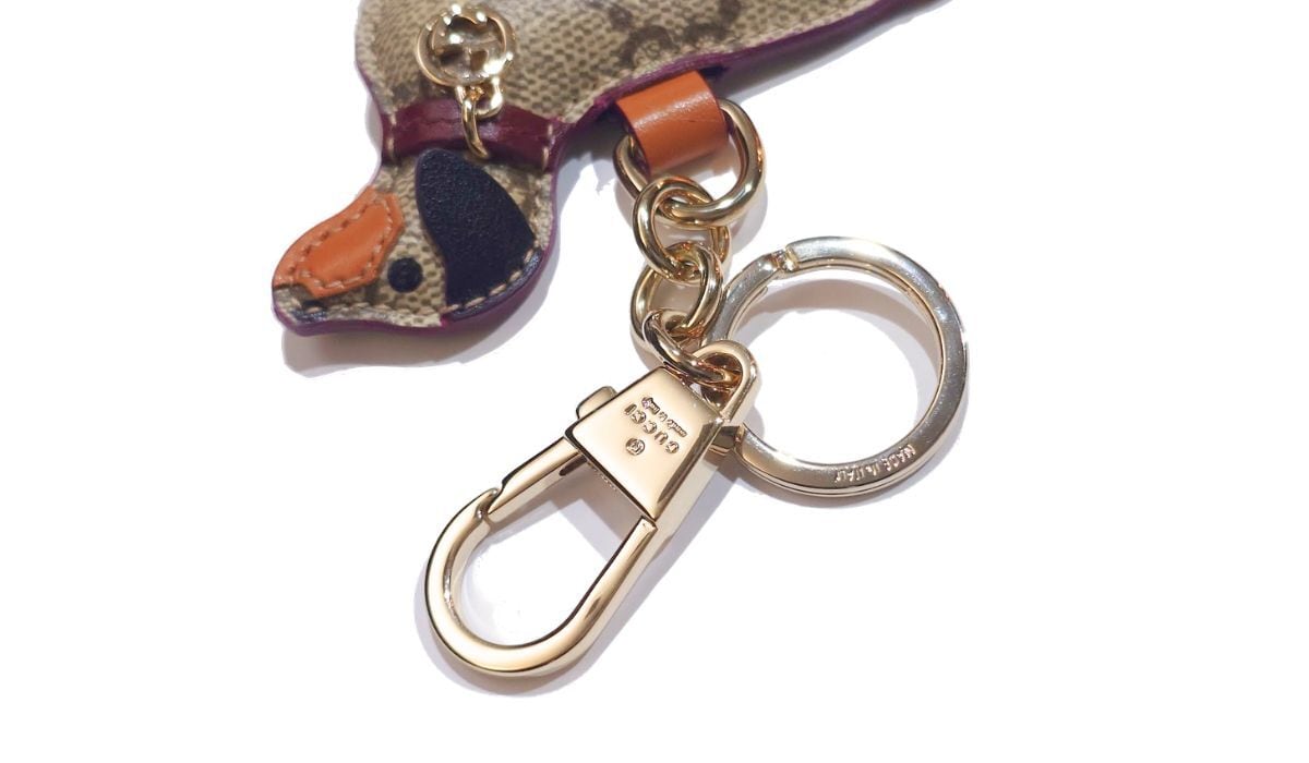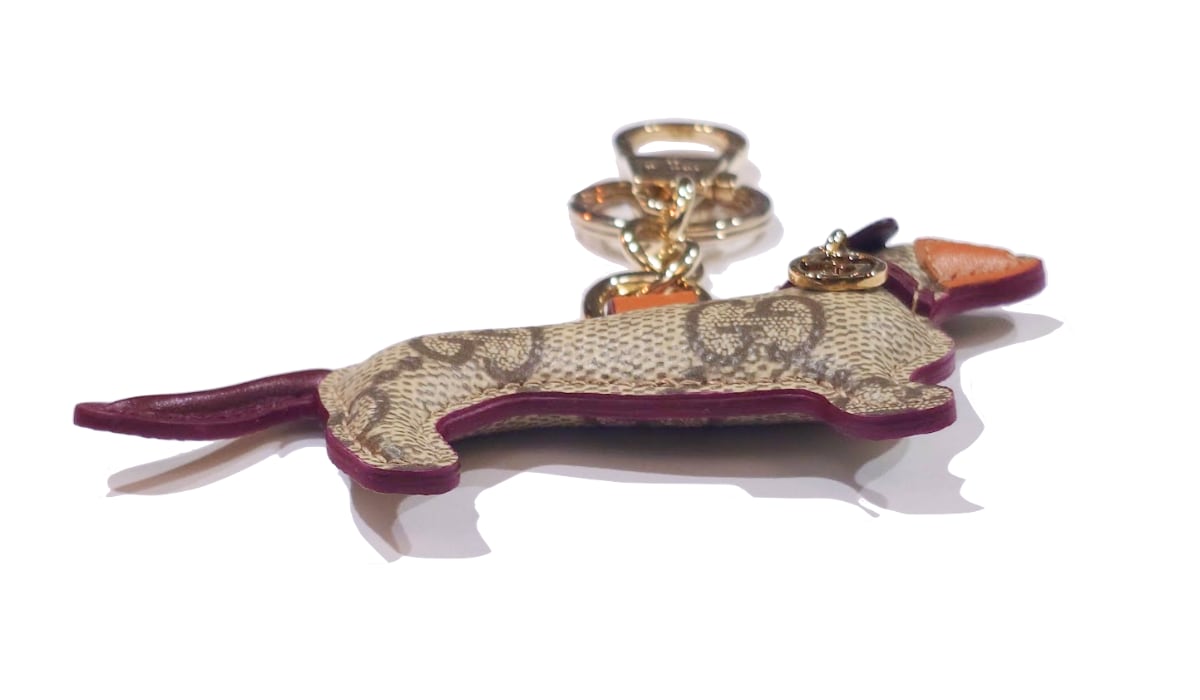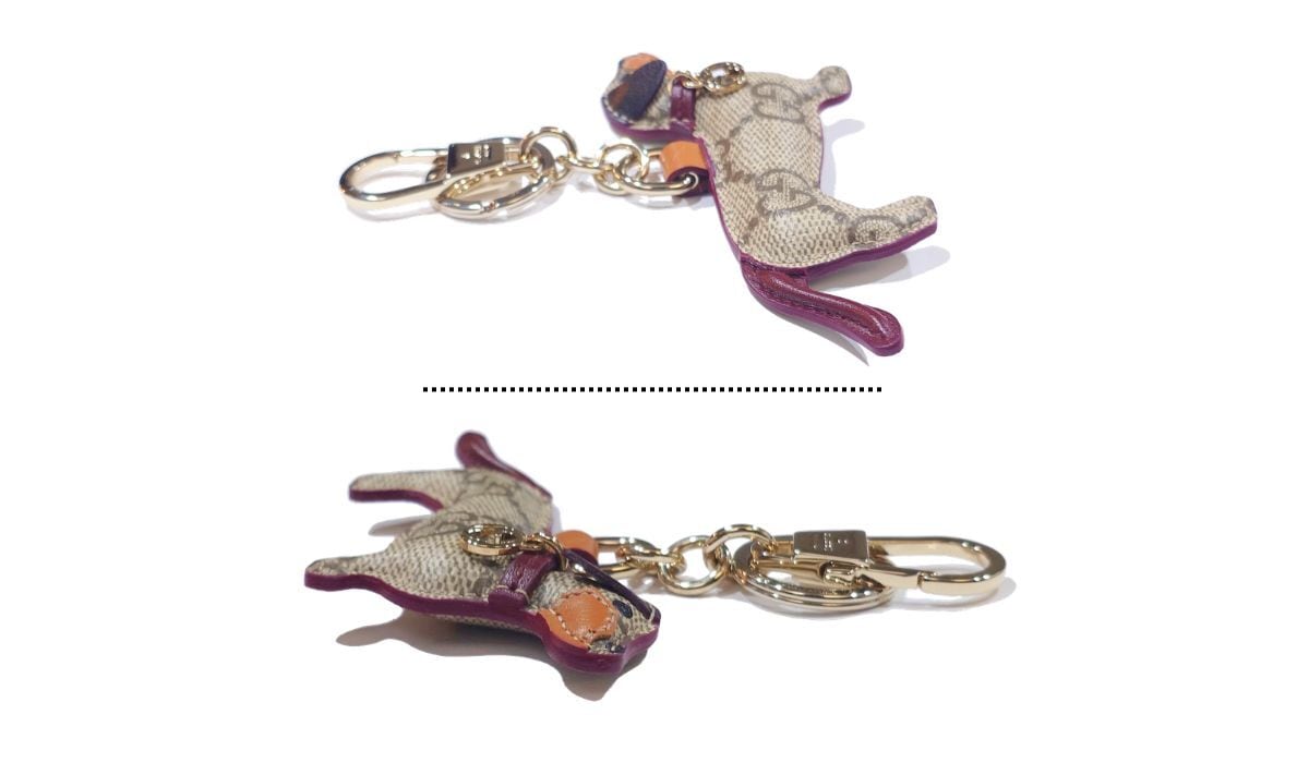 GUCCI グッチ ドッグ シェイプ バッグ チャーム キーホルダー ベージュ GGキャンバス 犬 821812