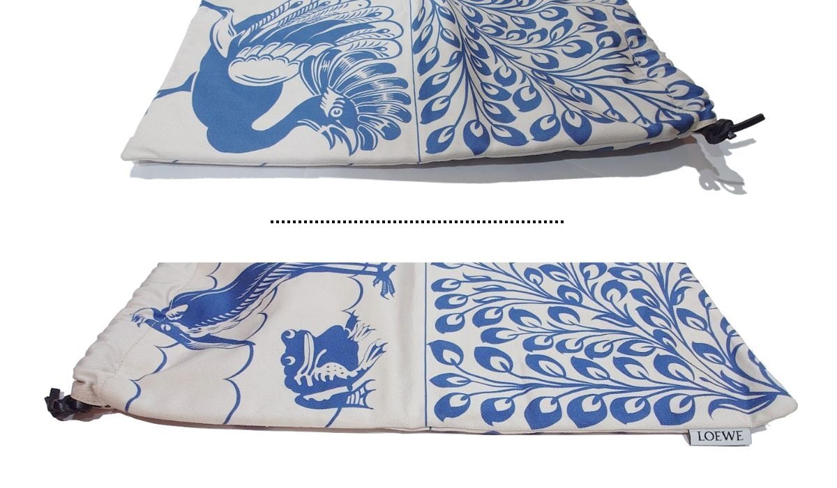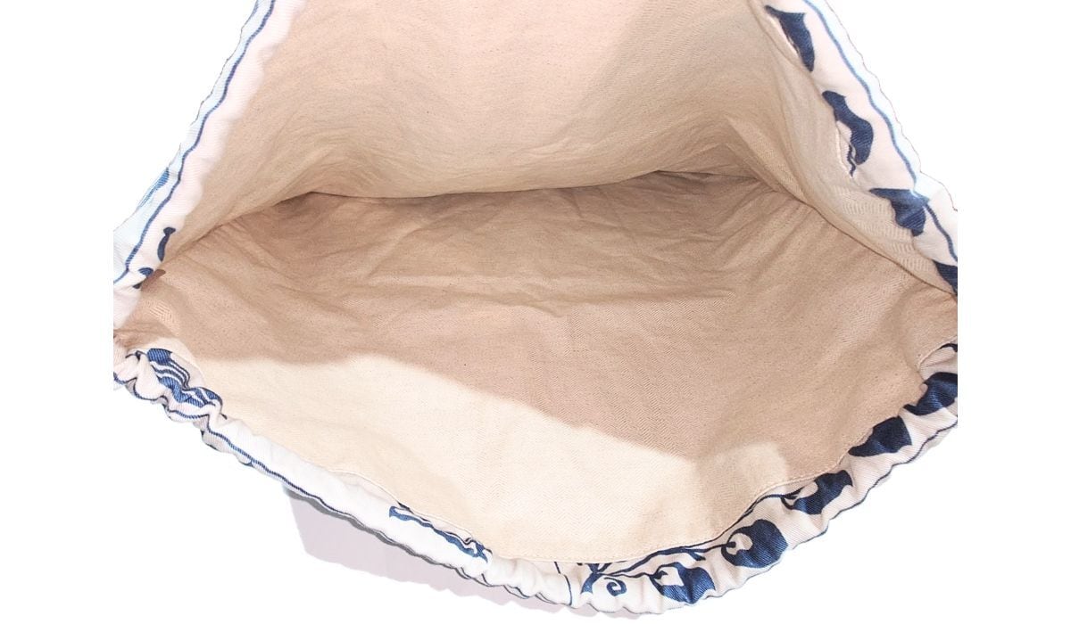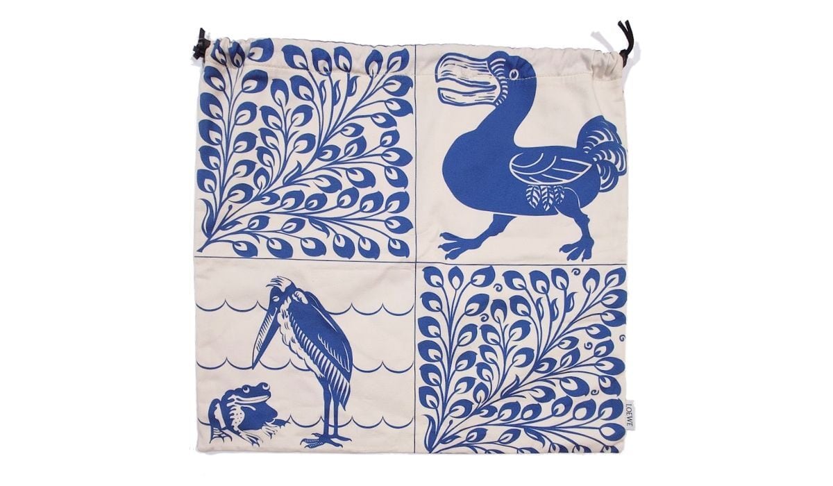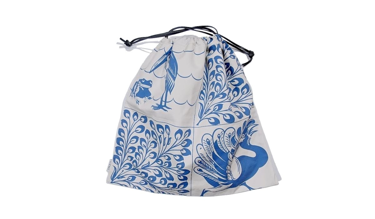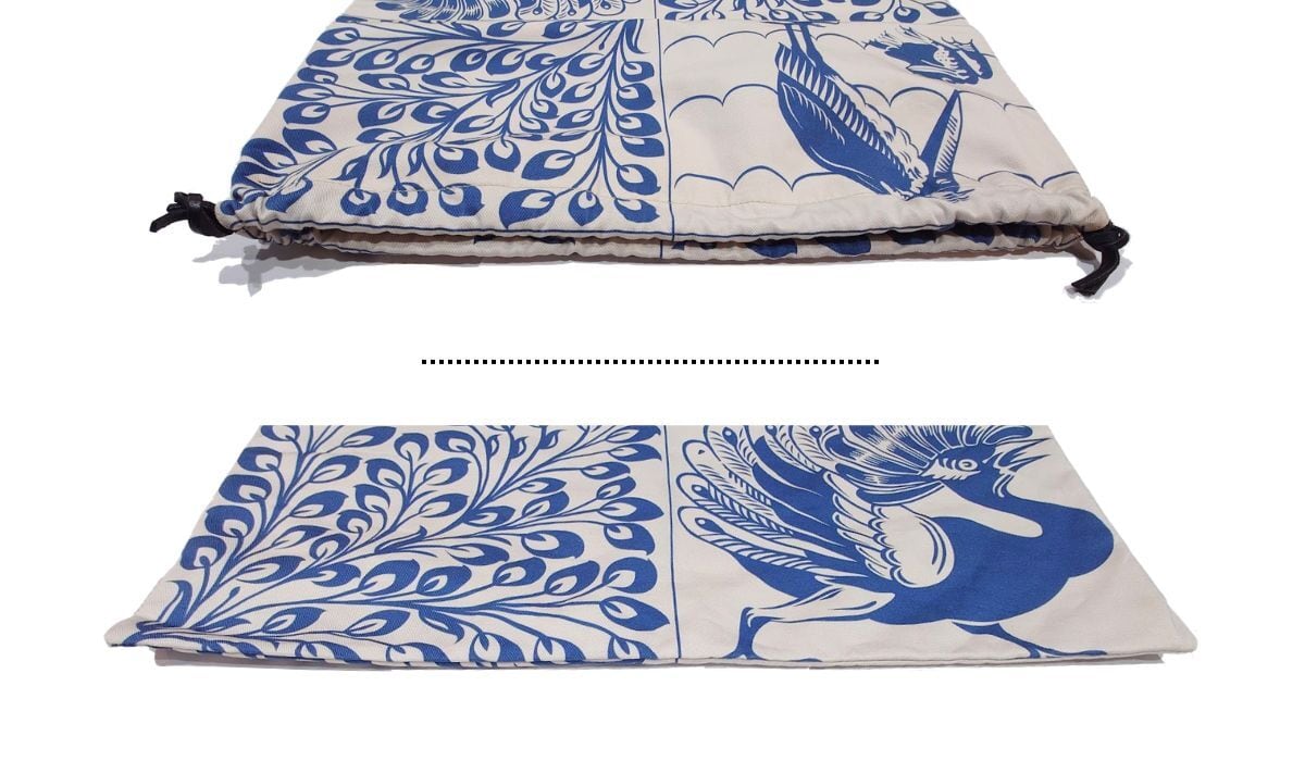LOEWE ロエベ ドローストリング バッグ ポーチ タイルデザイン ウィリアム ド モーガン 孔雀 ドードー コットン きなり ブルー 巾着