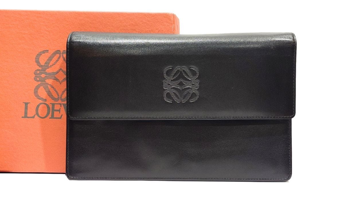 ヴィンテージ LOEWE ロエベ アナグラム セパレート ポーチ ミニ クラッチバッグ セカンドバッグ ナッパ レザー ブラック