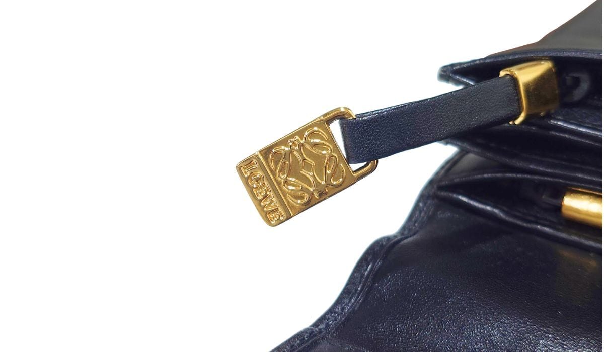 フラップやファスナープルにはLOEWEのアイコン、アナグラムがデザインされています。