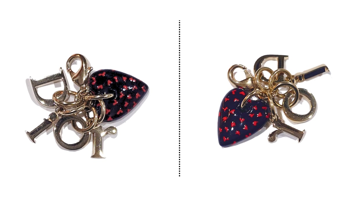 ・ハートチャーム、Diorロゴチャームに保管ダメージの軽微なスレがありますが、大きなキズや変色・腐食はありません。