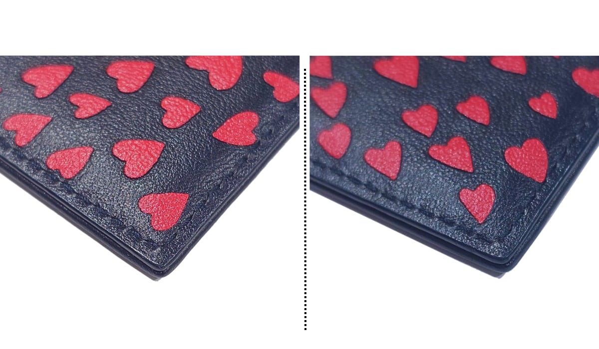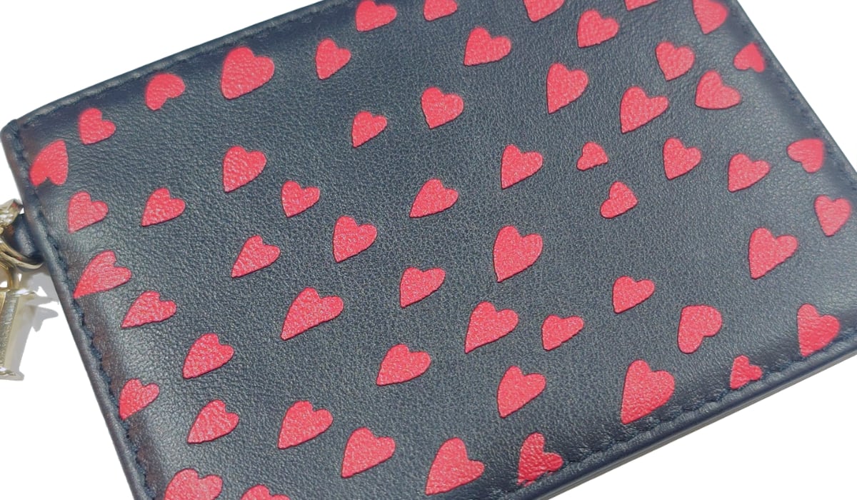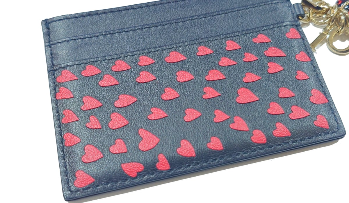 ◎深いネイビーのレザーに舞う、鮮やかなハートデザインがオシャレ!