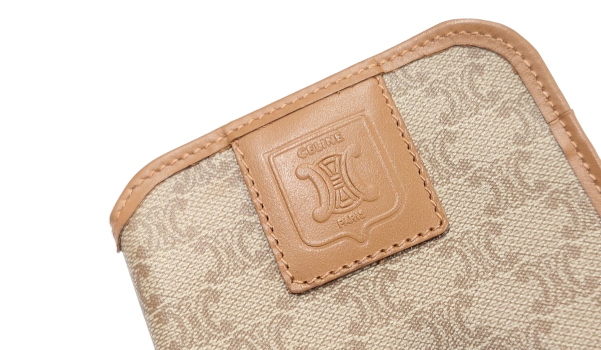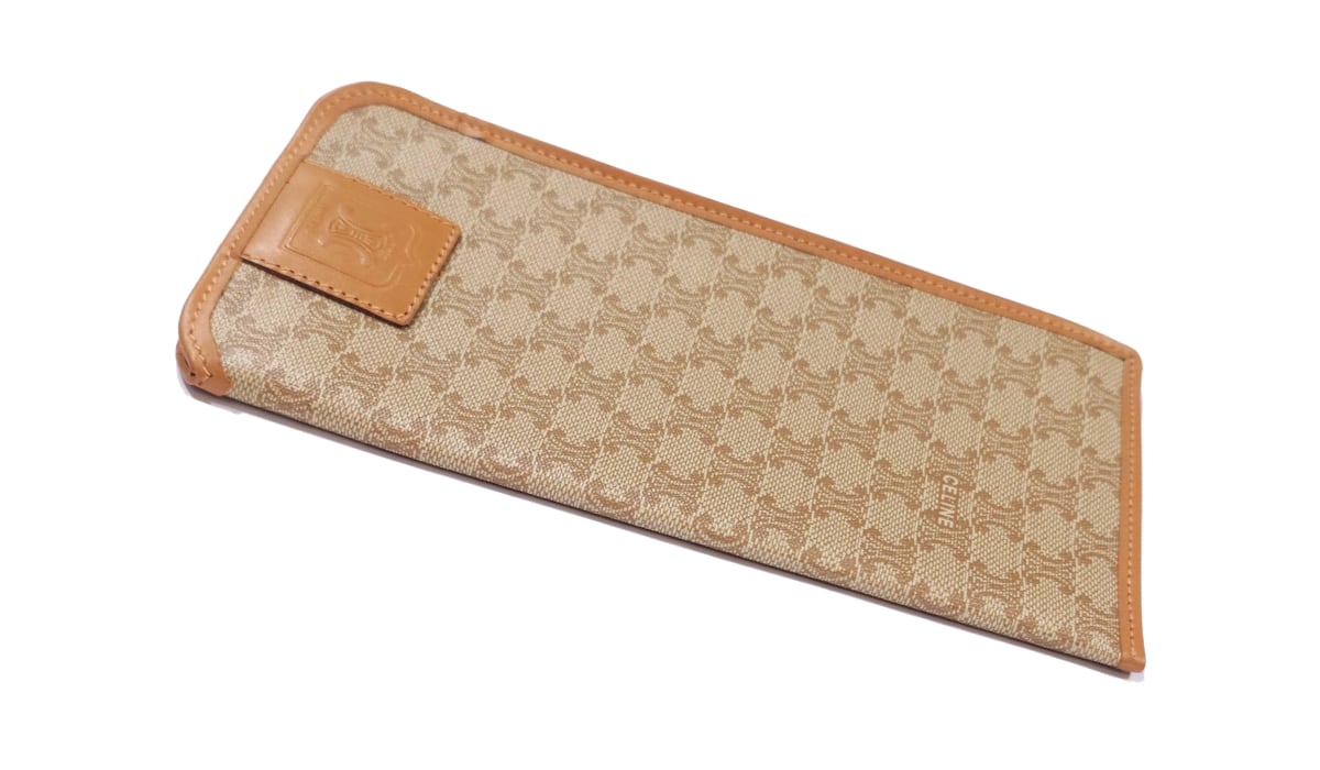 ヴィンテージ CELINE セリーヌ マカダム柄 ソフト メガネケース グラスケース PVC レザー ベージュ ブラウン