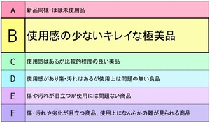 記載しております商品の状態説明・評価は、弊社基準にて判断したものとなります。