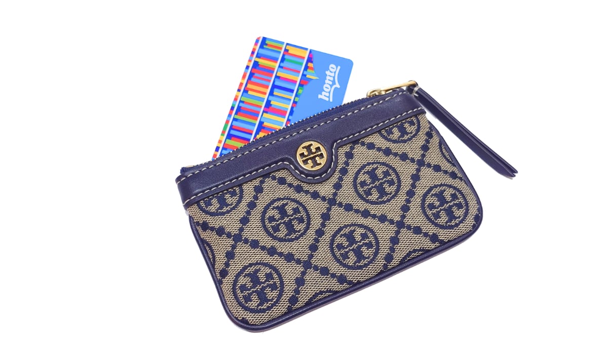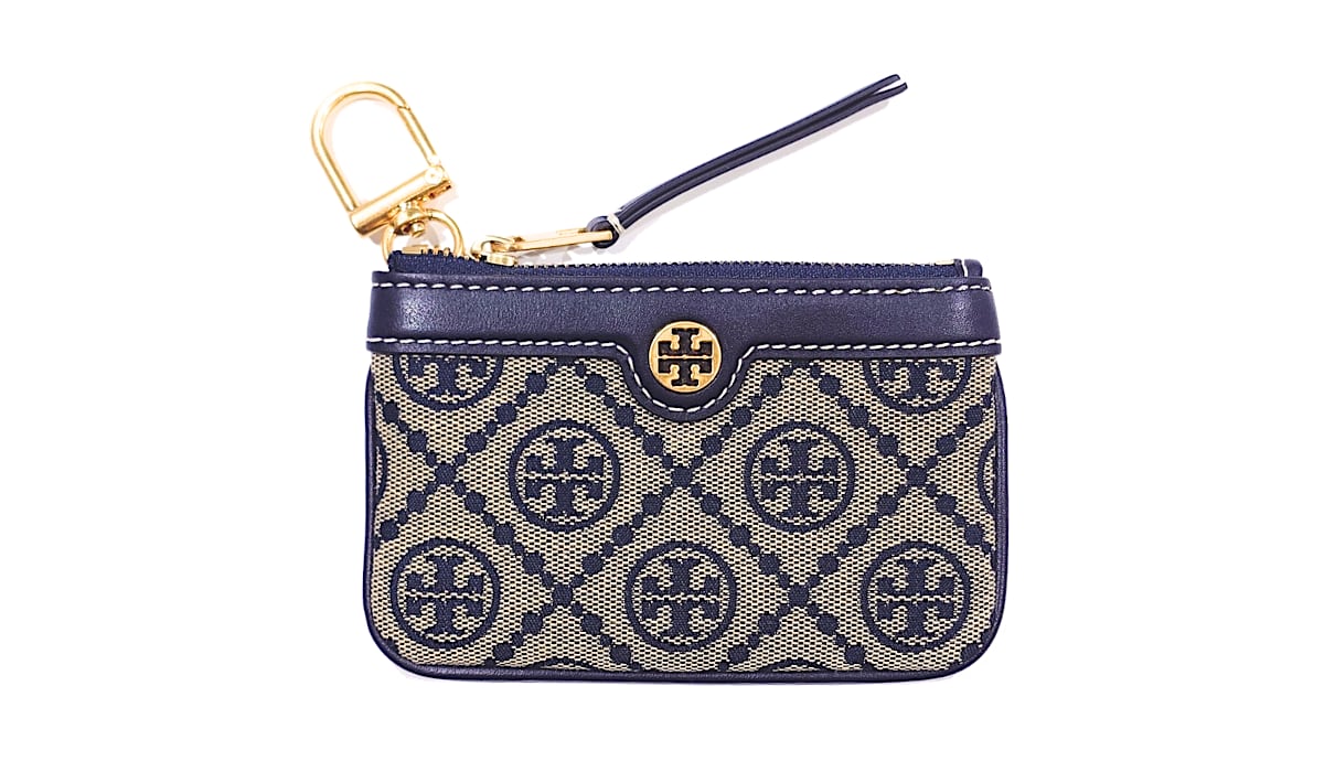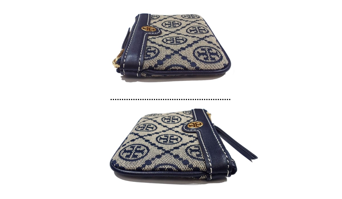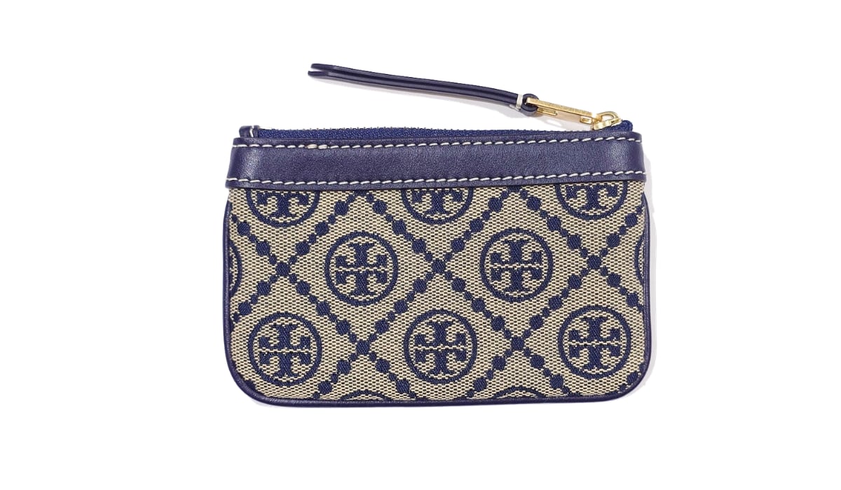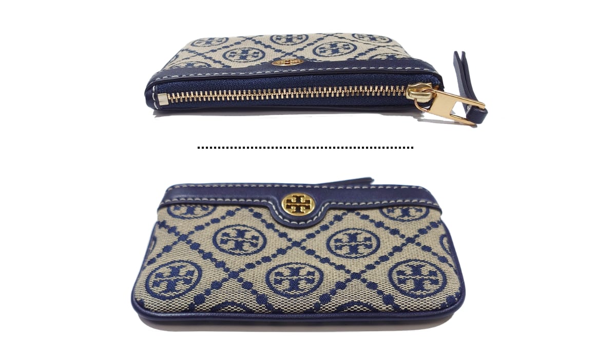 TORY BURCH トリーバーチ Tモノグラム コインケース キーケース カードケース 小銭入れ ジャガード レザー ネイビー 80799