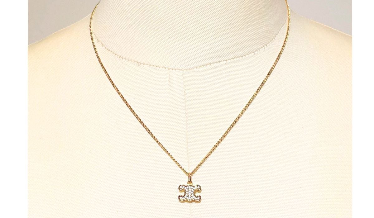 CELINE セリーヌ トリオンフ ラインストーン ネックレス ゴールド 460GB6BZI 35OR