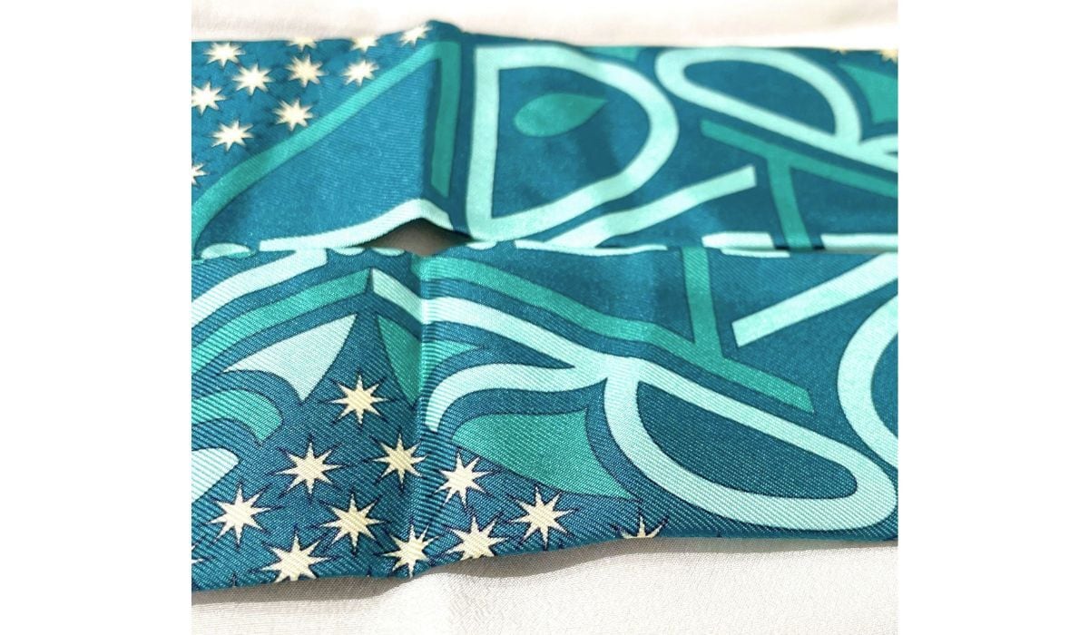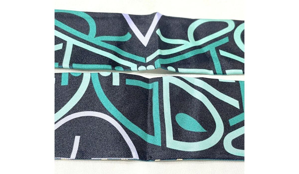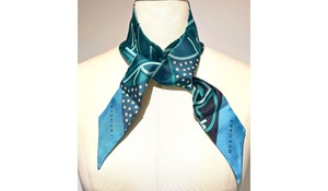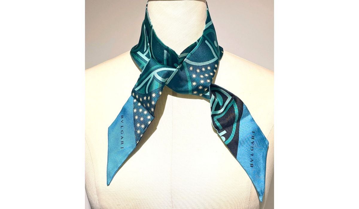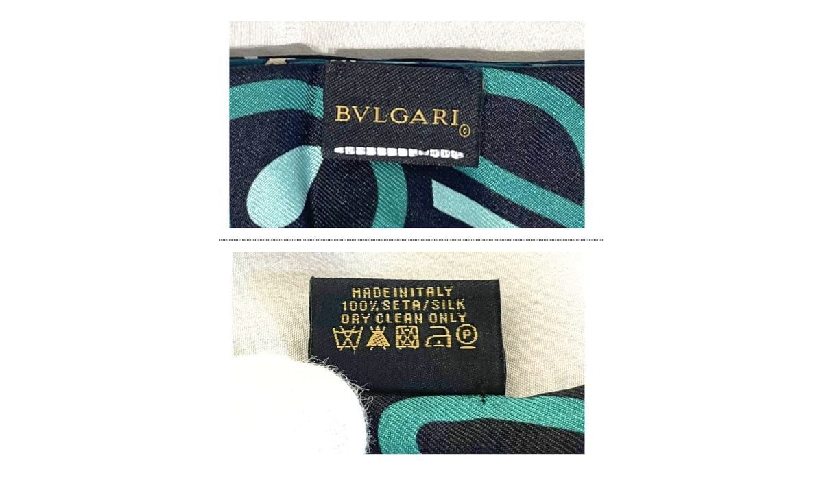 BVLGARI ブルガリ ロゴ シェリー リボン スカーフ シルク グリーン ブラック マルチカラー リバーシブル