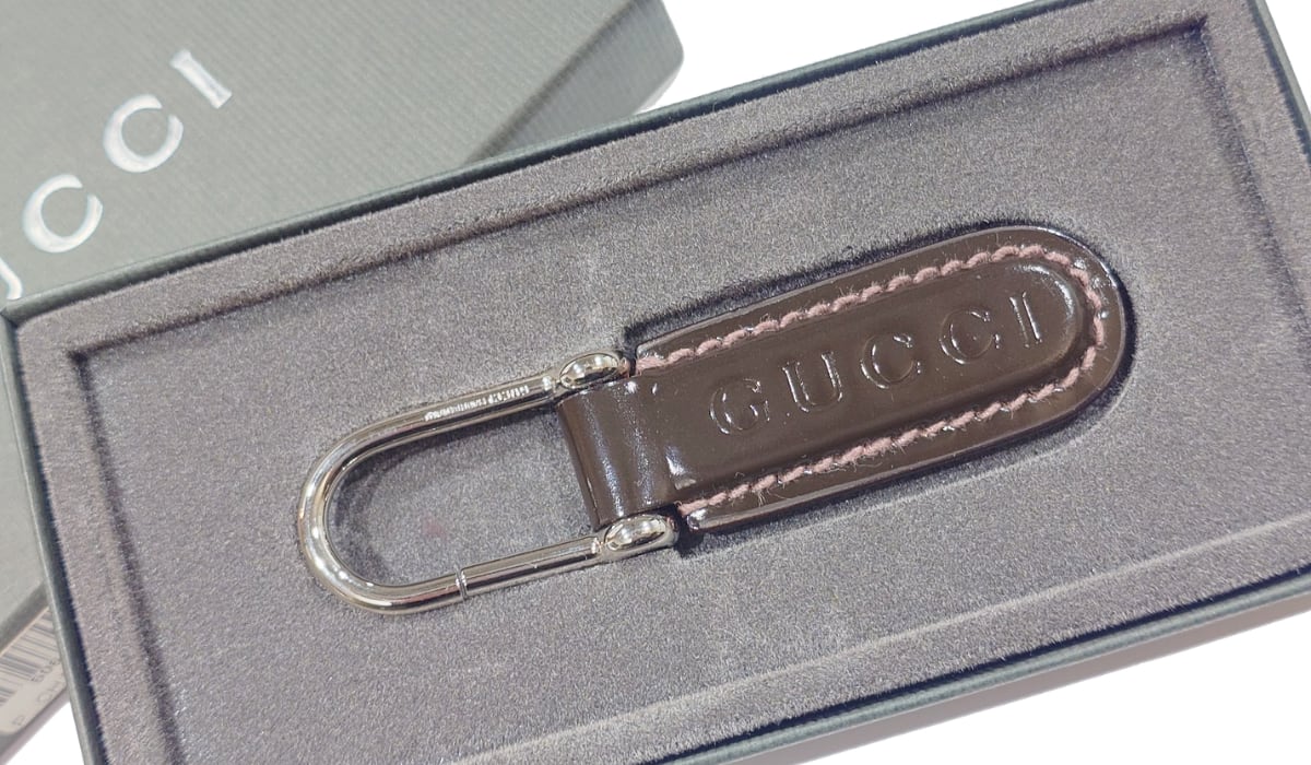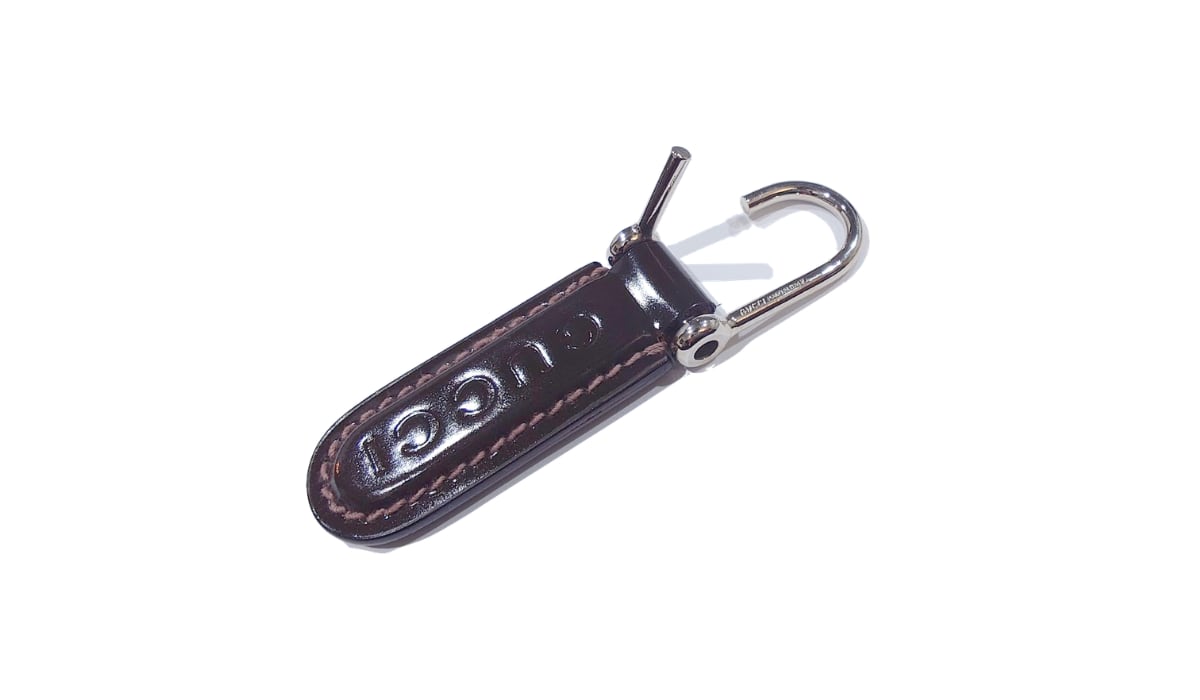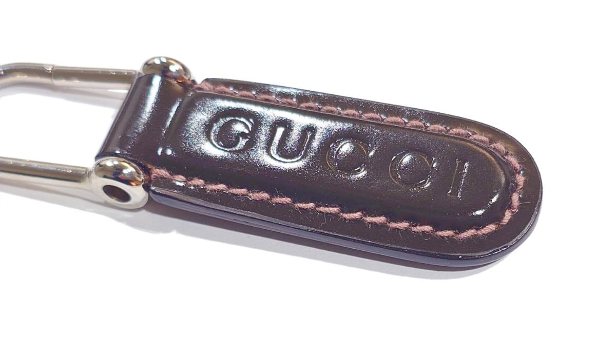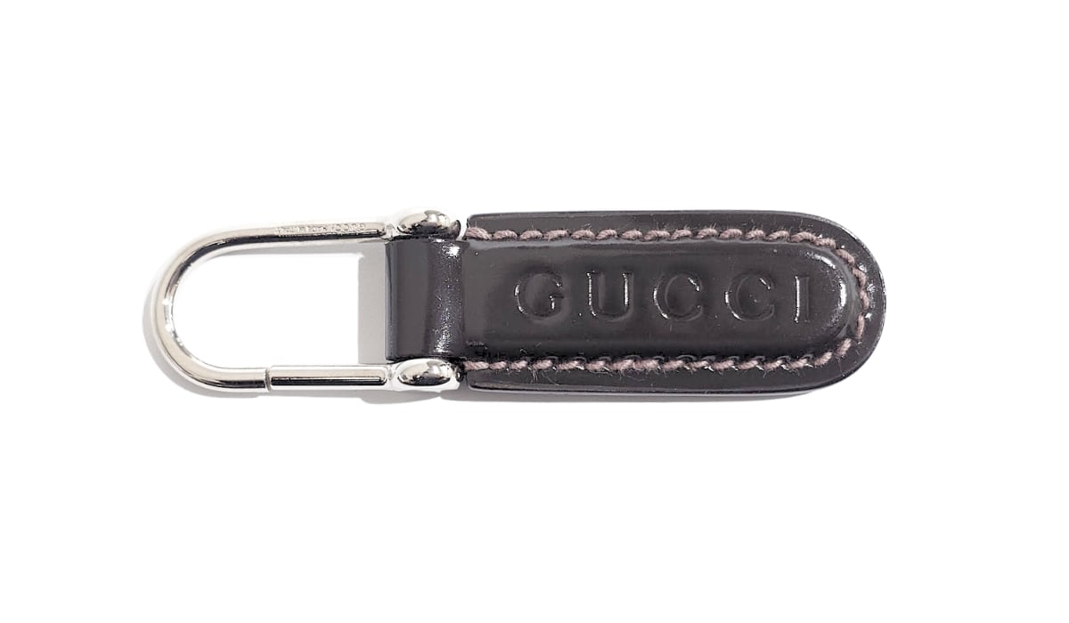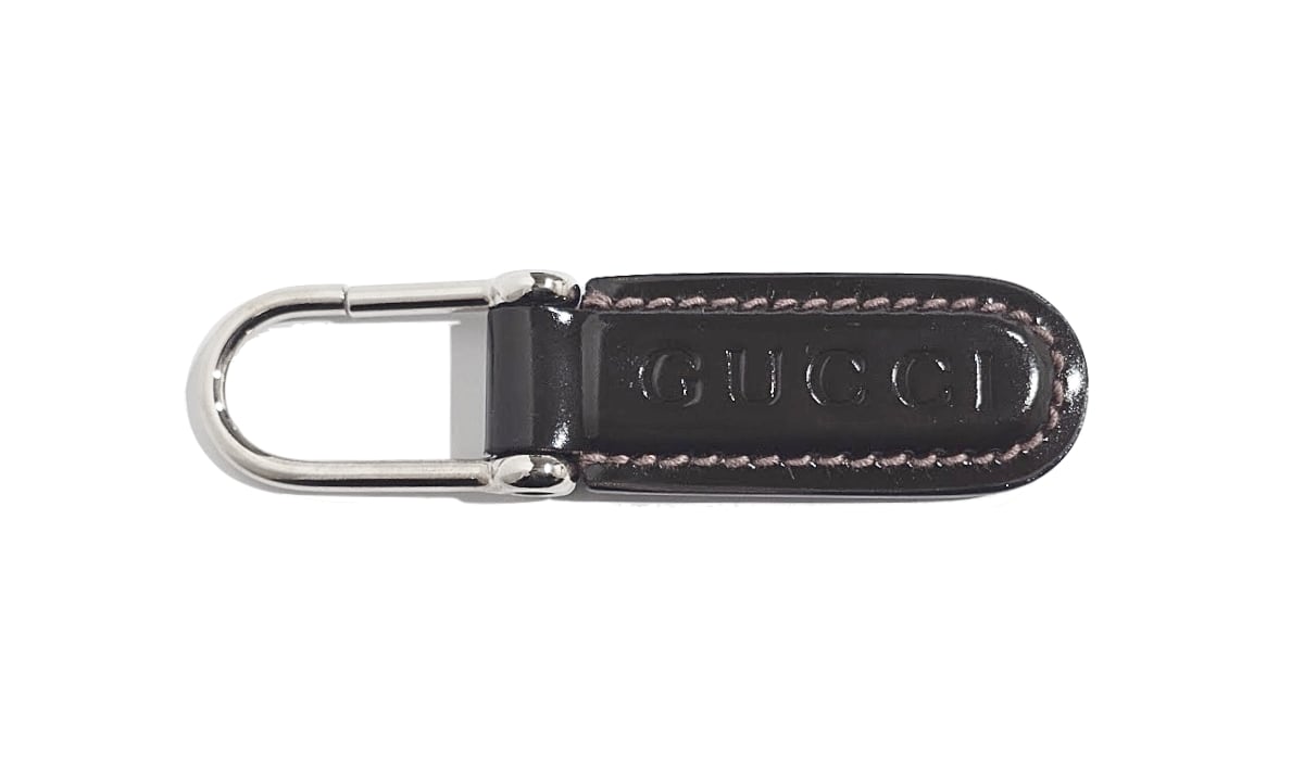 GUCCI グッチ ロゴ キーリング キーホルダー チャーム ブラウン 茶 パテントレザー エナメル