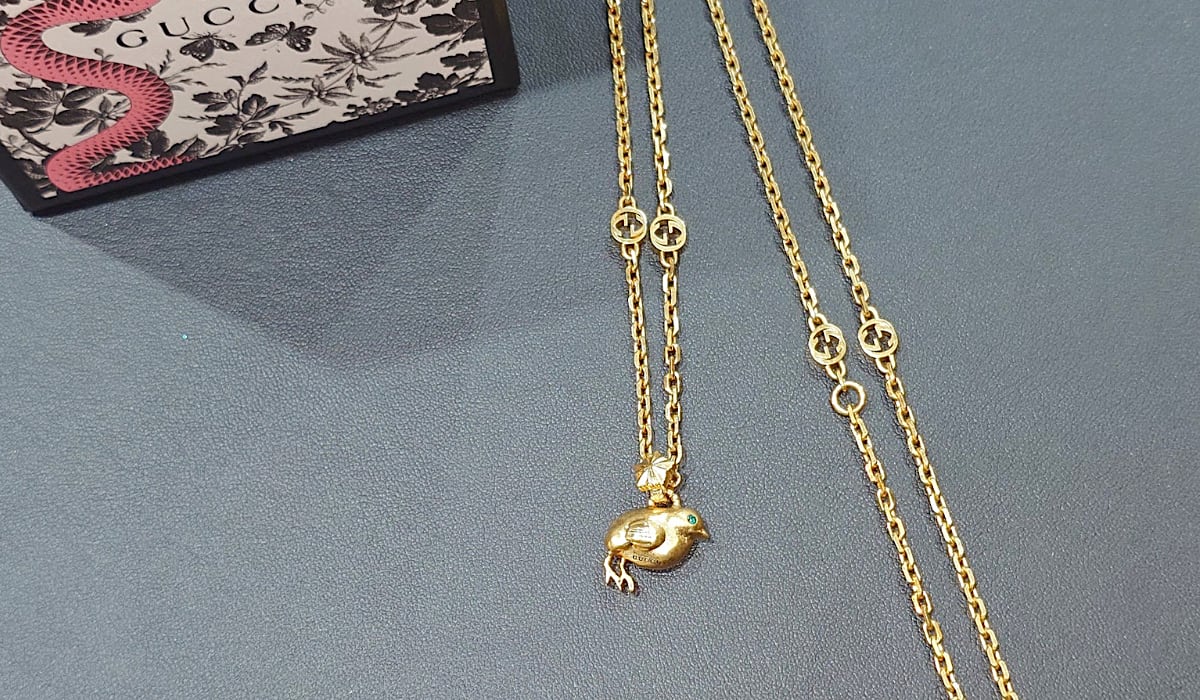 チェーンにはGUCCIの代表的なアイコン、インターロッキングGが施されています。