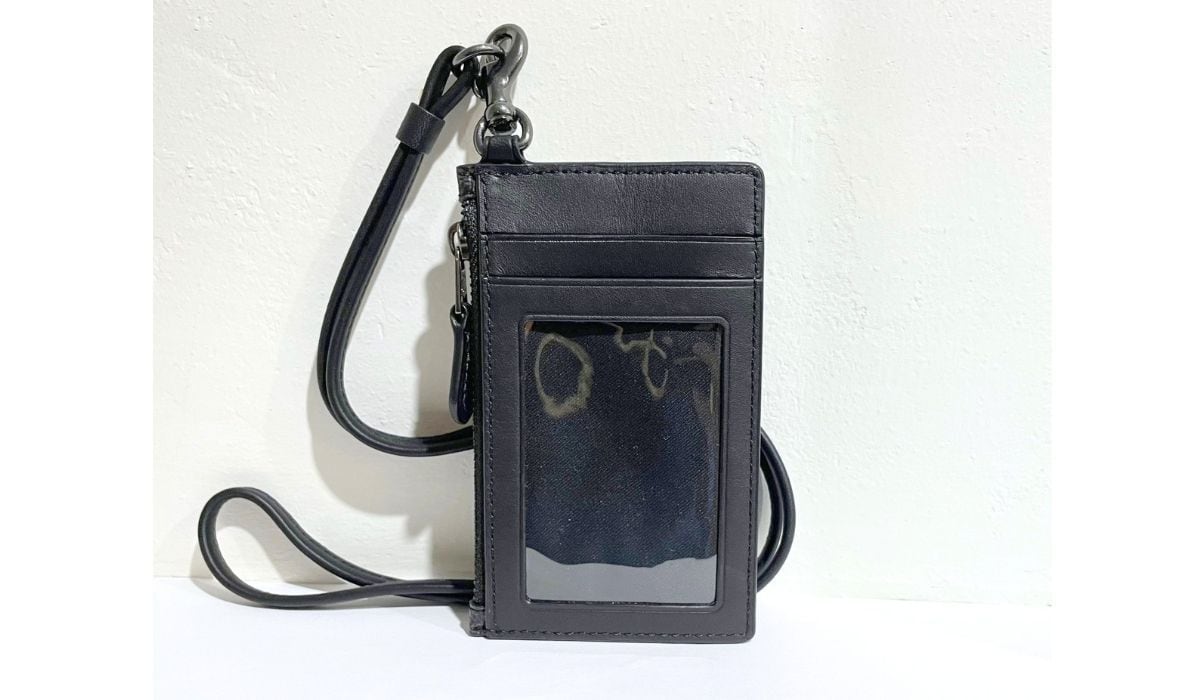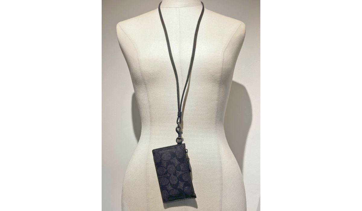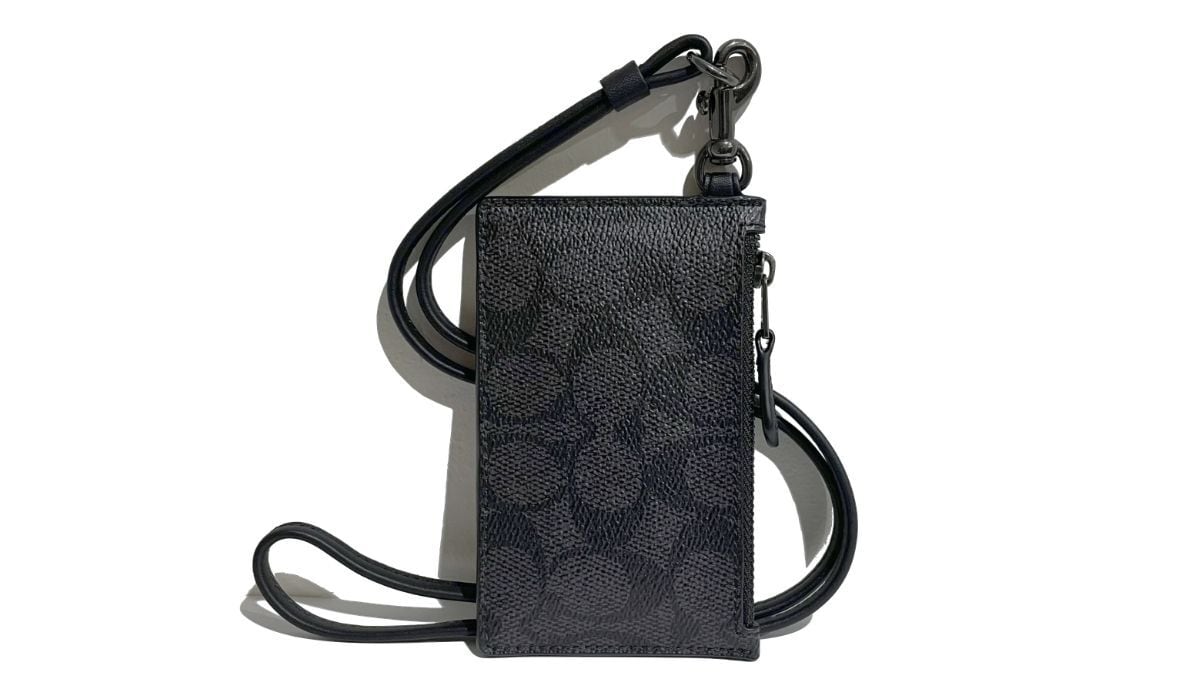 COACH コーチ シグネチャー ランヤード カードケース パスケース コインケース ネックストラップ チャコール ブラック CAJ46